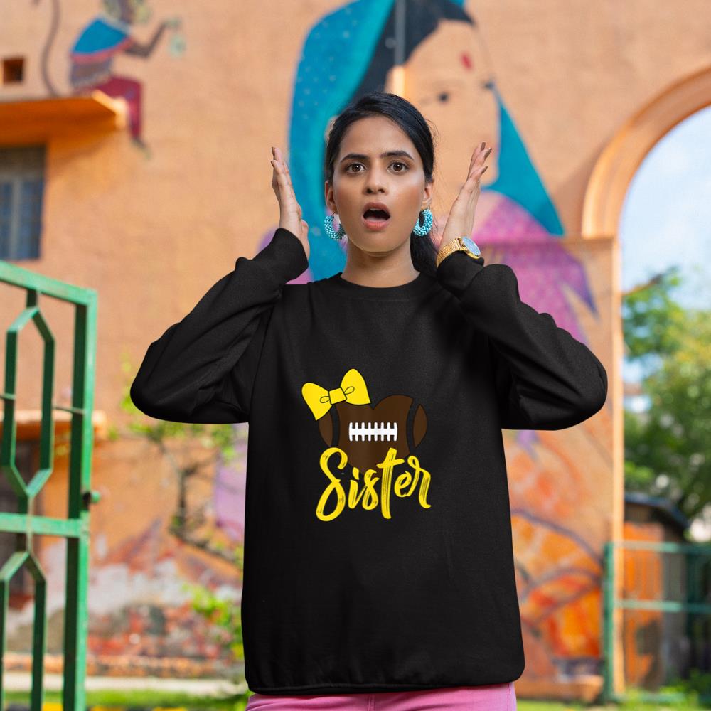 Football Sister Shirt Football Sister Bow Shirt Yellow Gold Sweatshirt