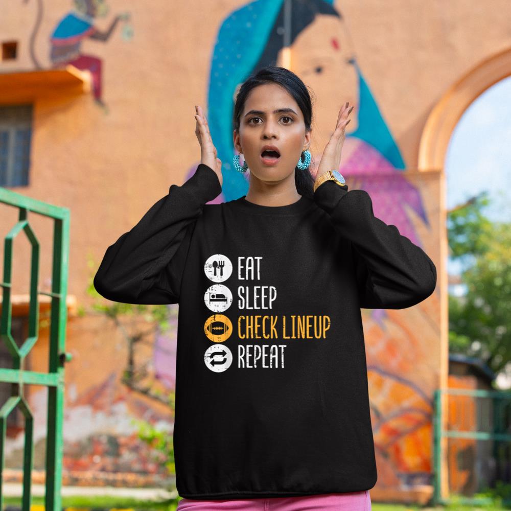 Eat Sleep Check Lineup Repeat Fantasy Football Men Boys Kids Sweatshirt