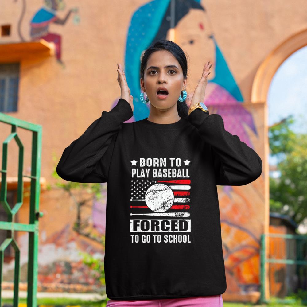 Born To Play Baseball Forced To Go To School USA Flag Sweatshirt