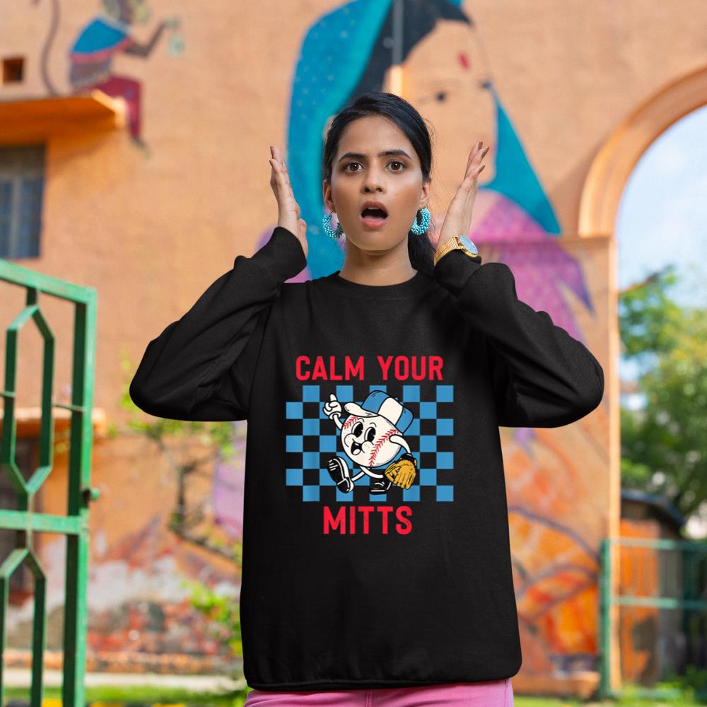 Calm Your Mitts Baseball Player Funny Baseball Game Joke Sweatshirt