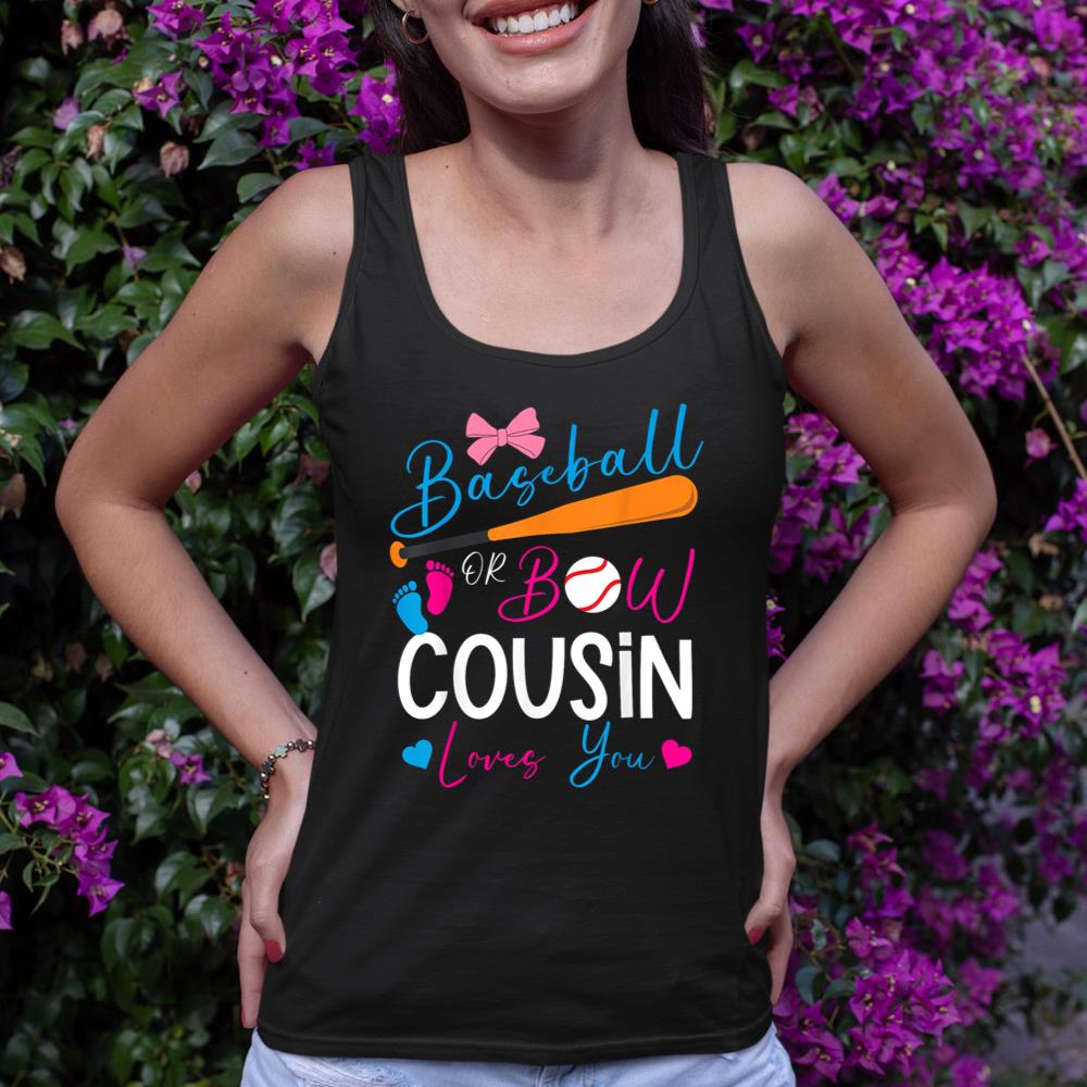 Baseball or Bow Cousin Loves You Baseball Gender Reveal Tank Top
