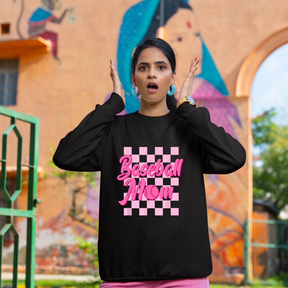 Baseball Mom Black And Pink Grid Sports Mother Mama Player Sweatshirt