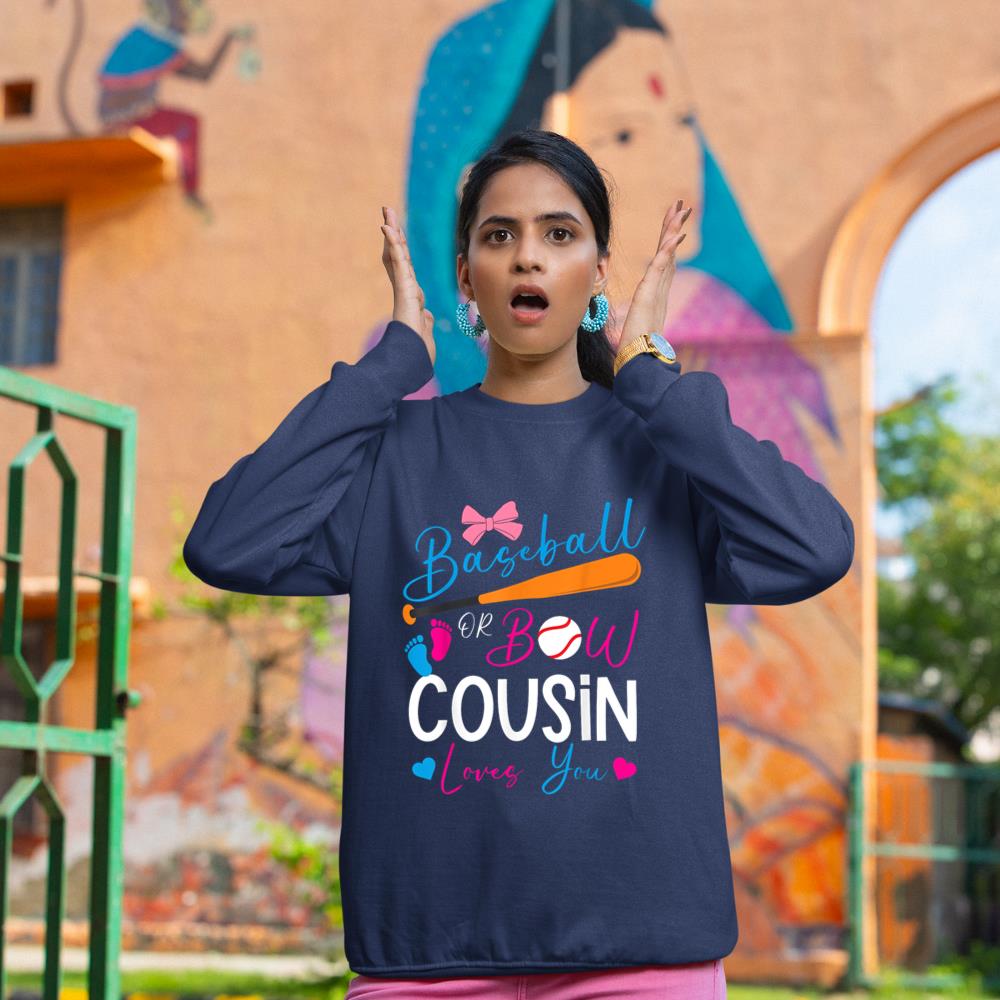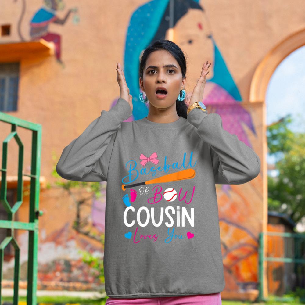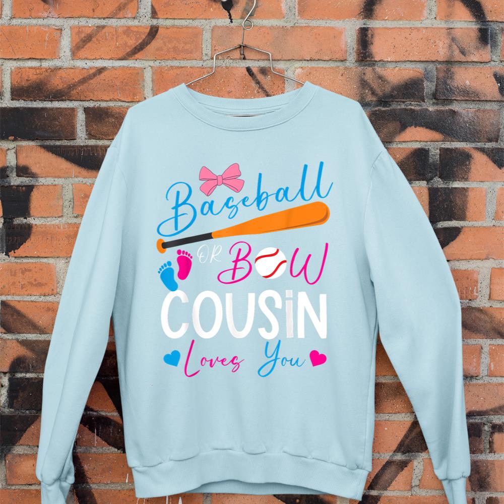 Baseball or Bow Cousin Loves You Baseball Gender Reveal Sweatshirt