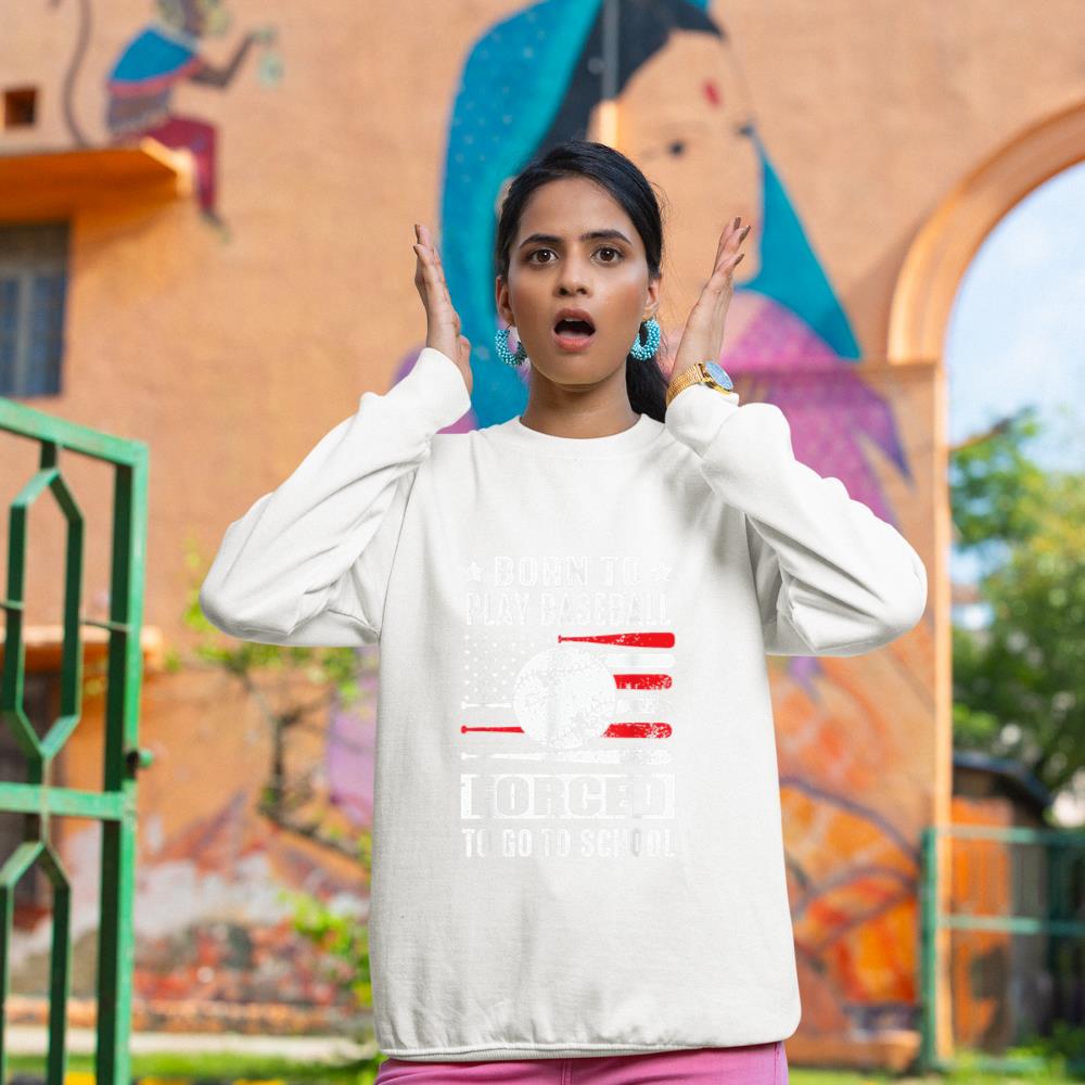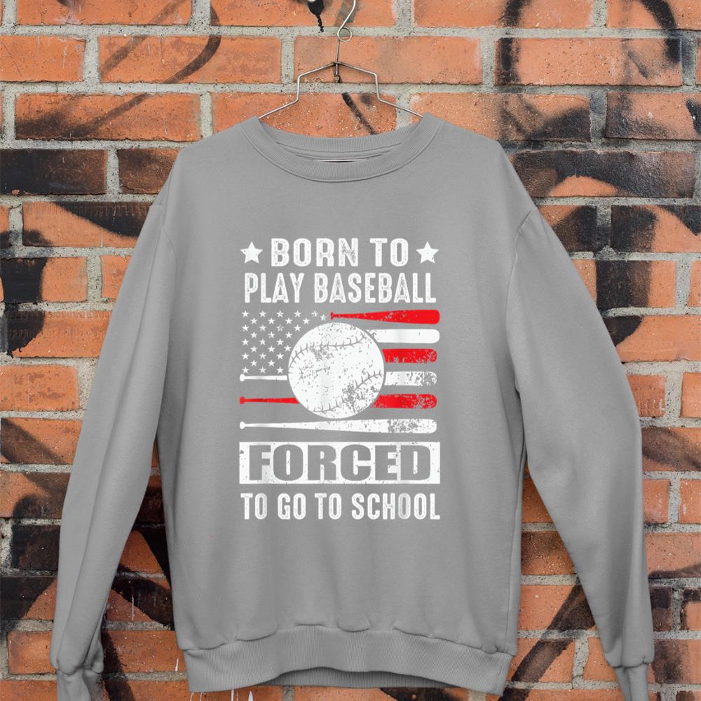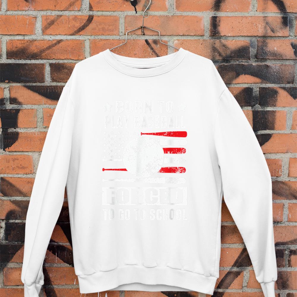 Be the first to review “Born To Play Baseball Forced To Go To School USA Flag Sweatshirt”