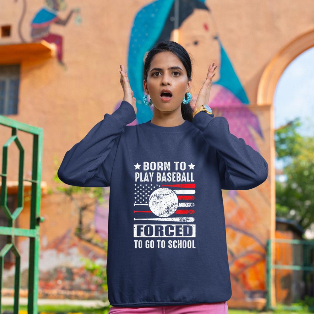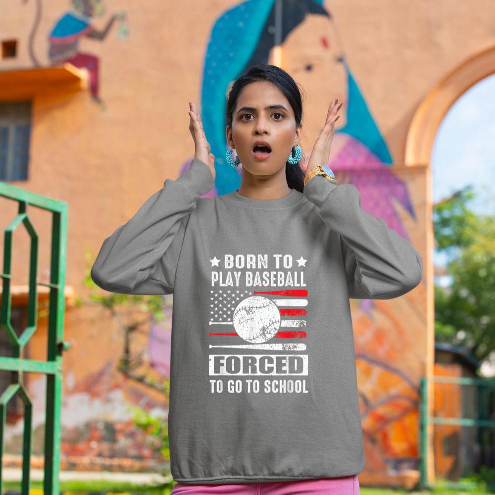 Born To Play Baseball Forced To Go To School USA Flag Sweatshirt