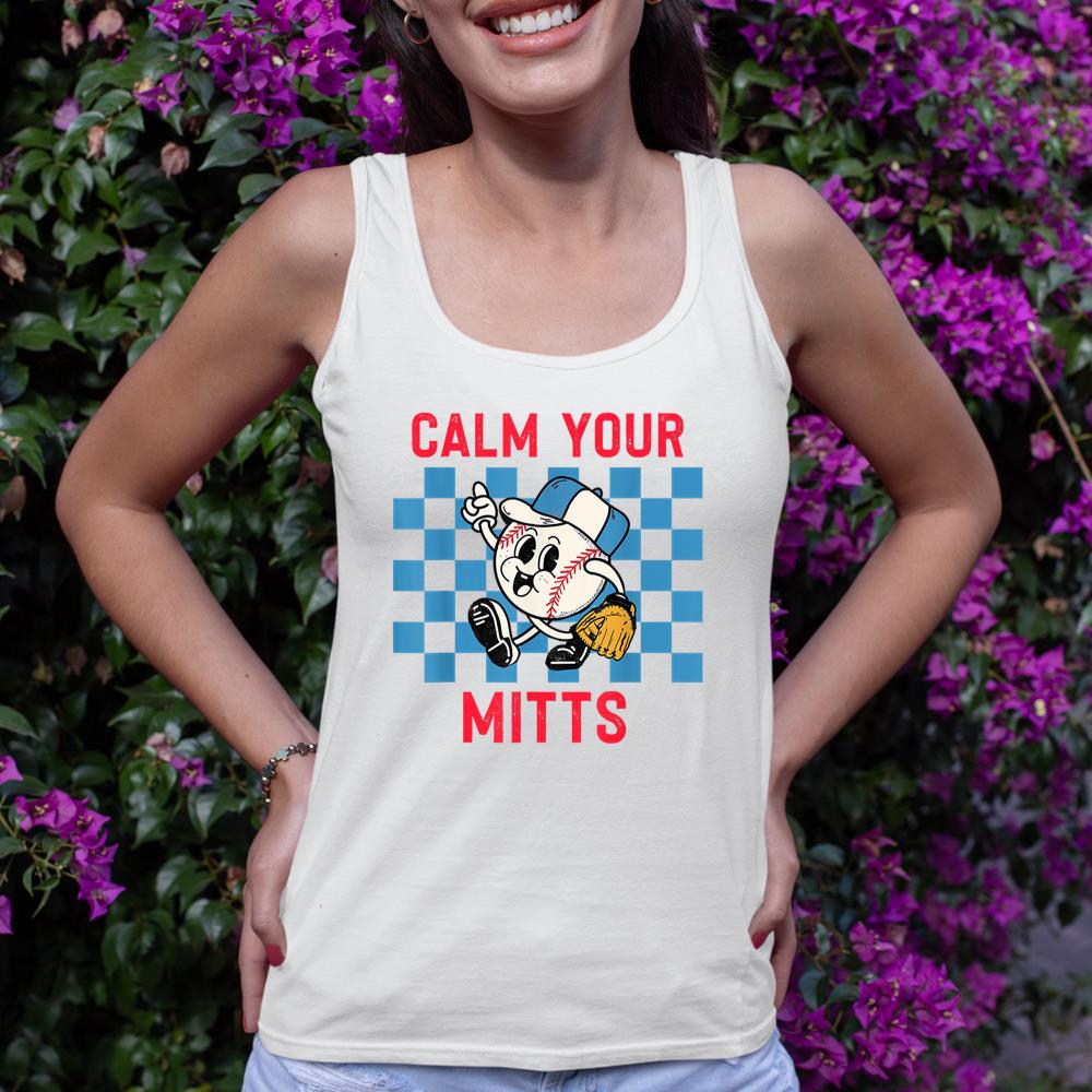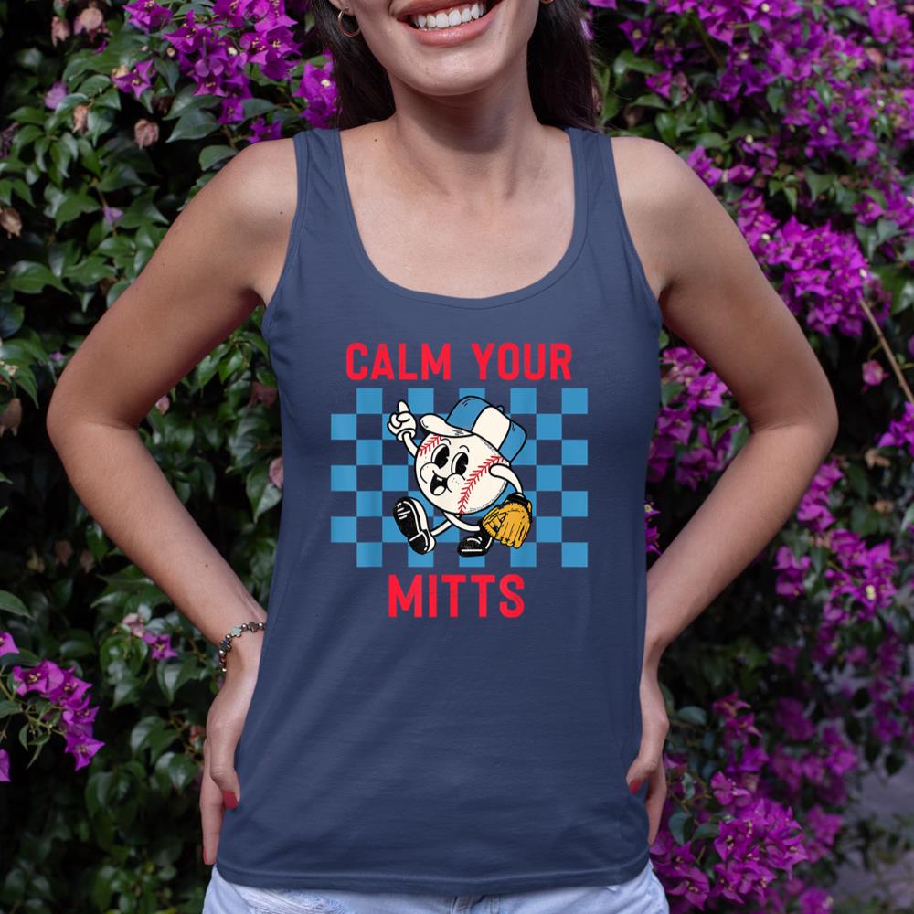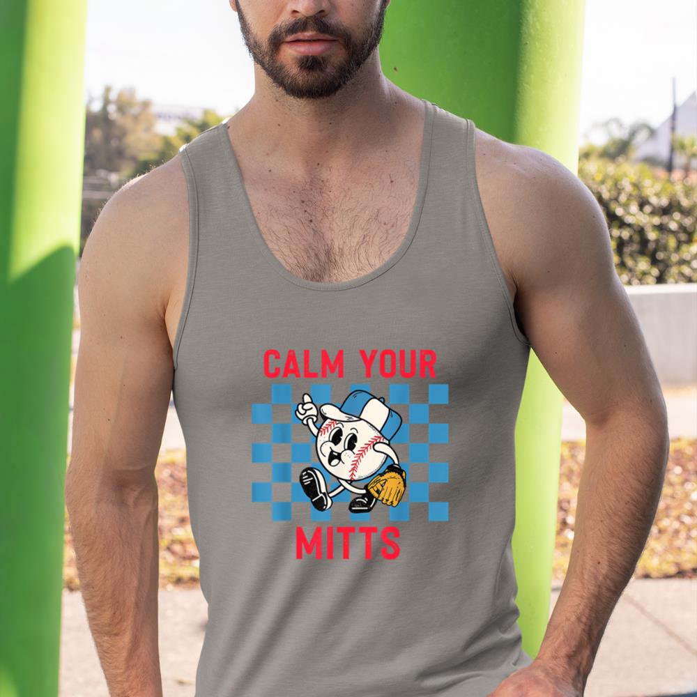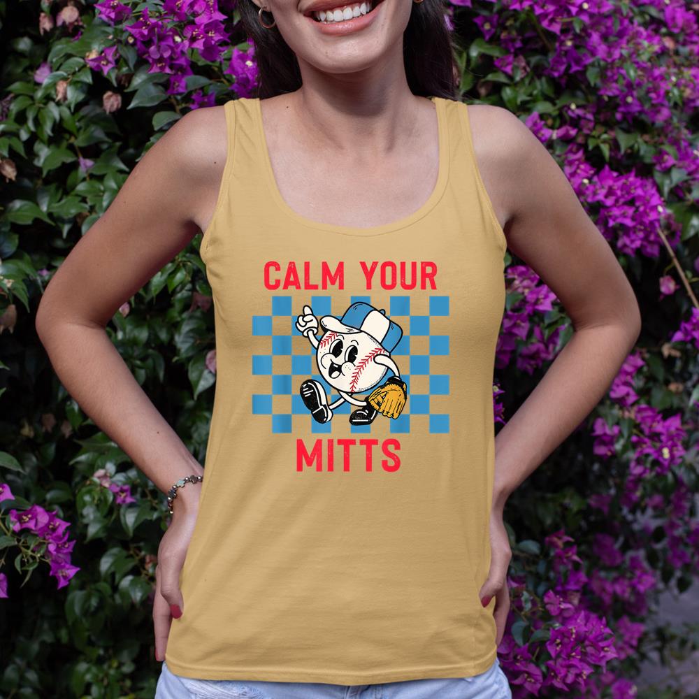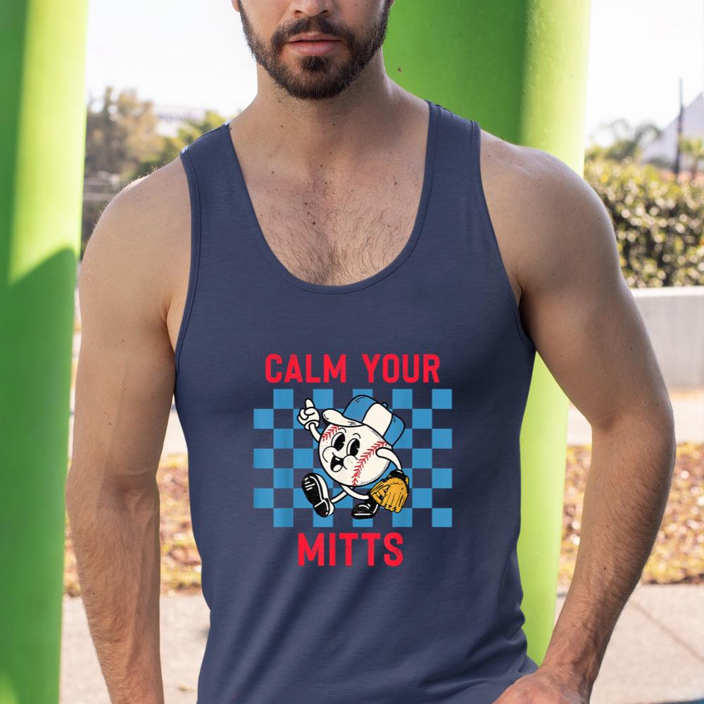 Calm Your Mitts Baseball Player Funny Baseball Game Joke Tank Top