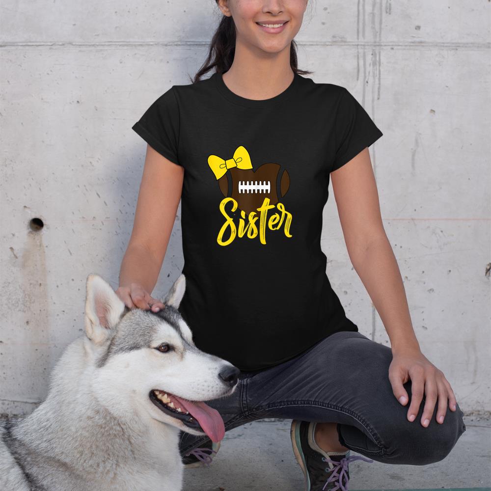 Football Sister Shirt Football Sister Bow Shirt Yellow Gold T-Shirt