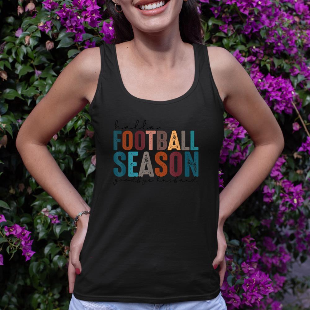 Hello Football Season Goodbye Husband Vintage Football Wife Tank Top