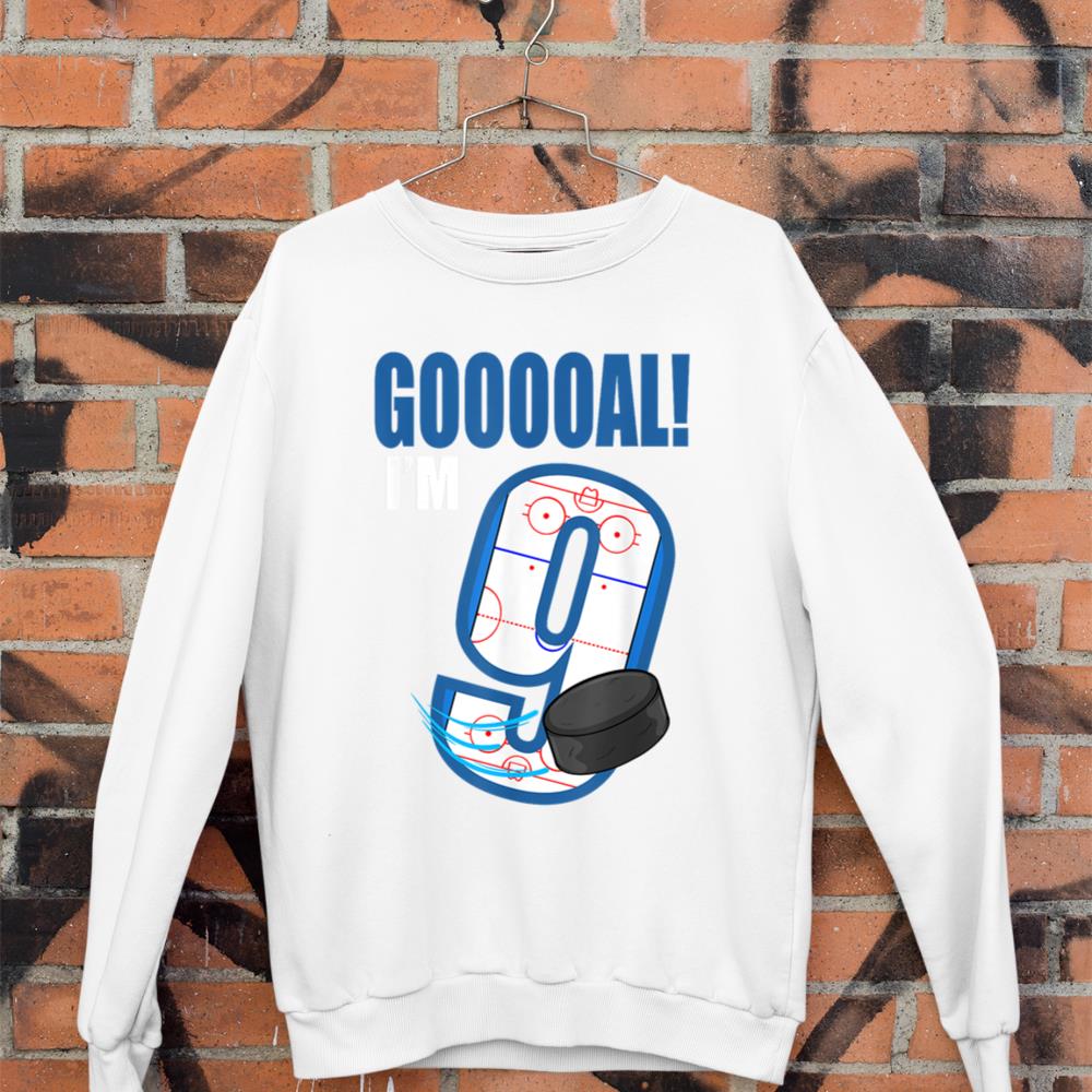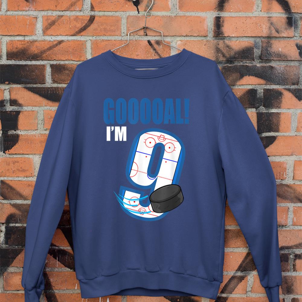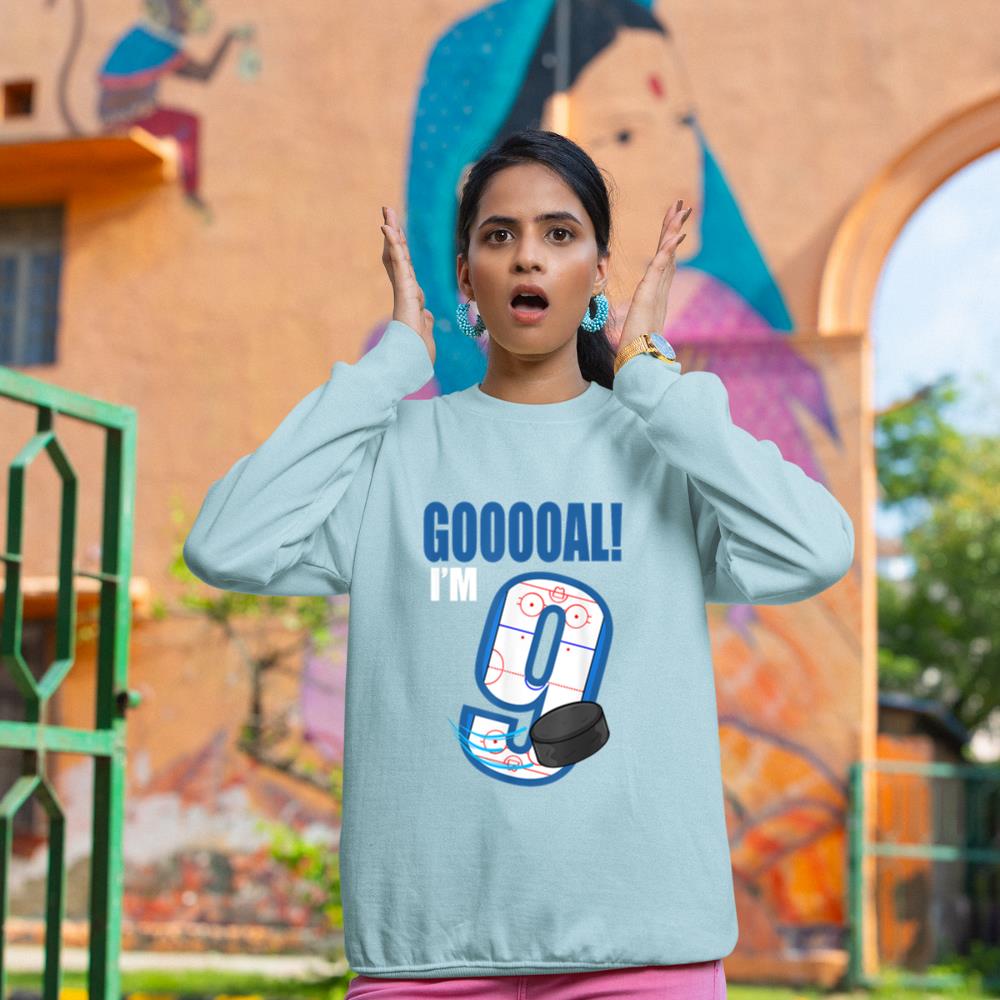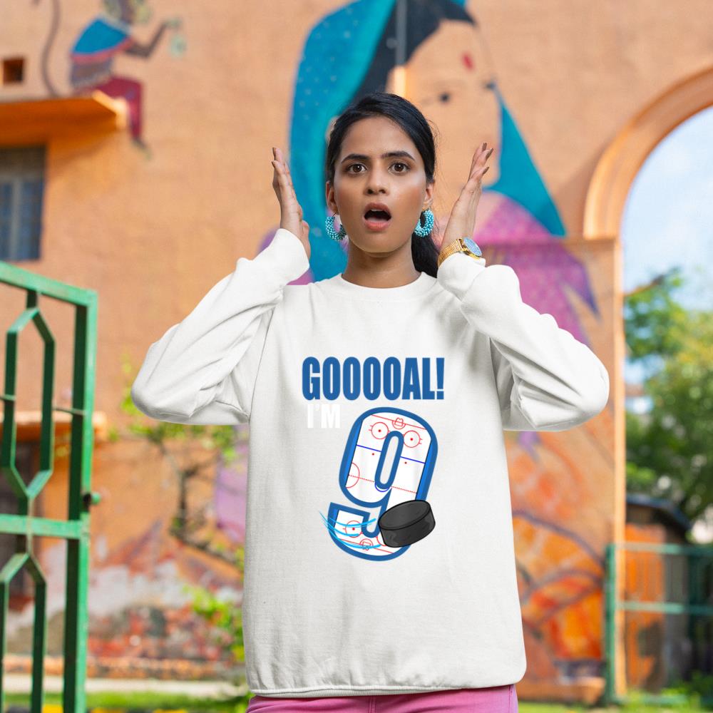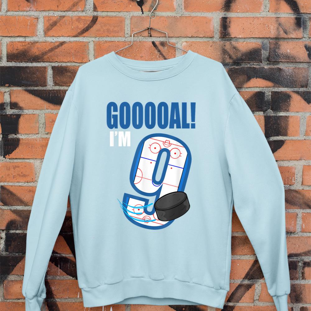 Hockey Player Goal Gooooal I’m 9 Ice Hockey Birthday Sweatshirt