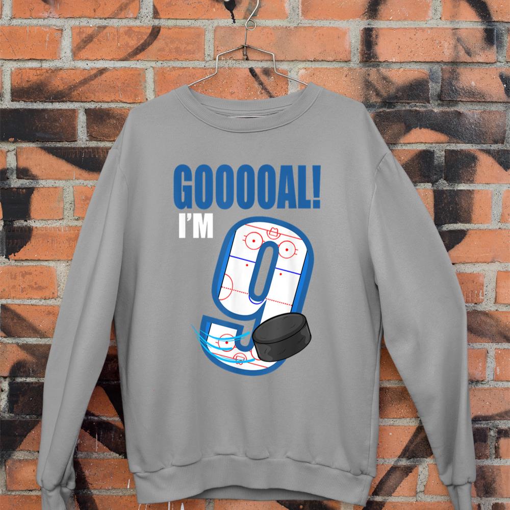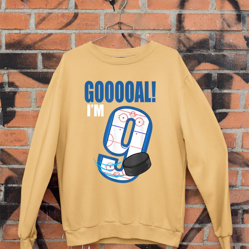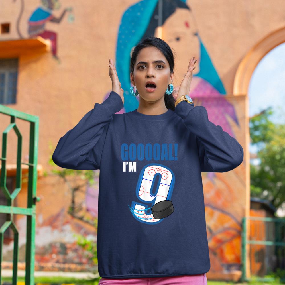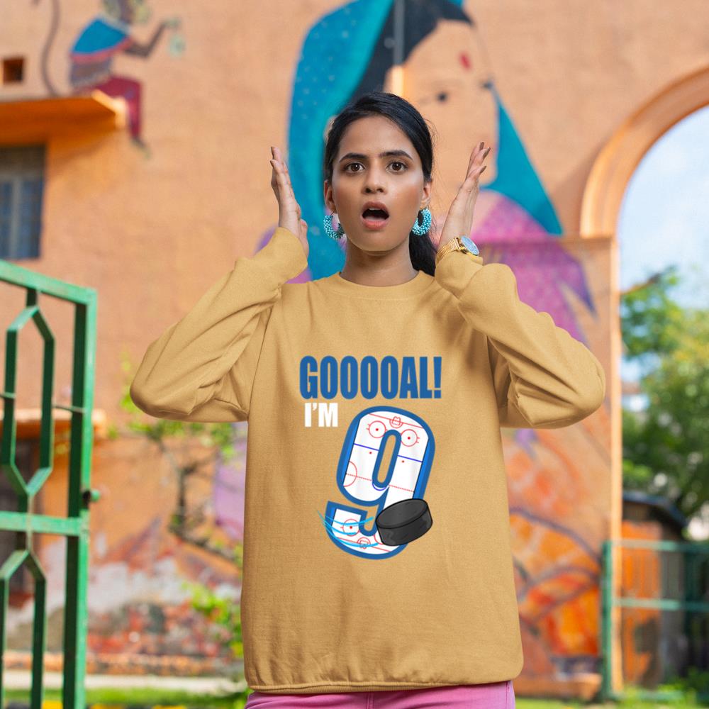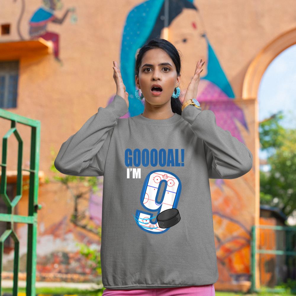 Hockey Player Goal Gooooal I’m 9 Ice Hockey Birthday Sweatshirt