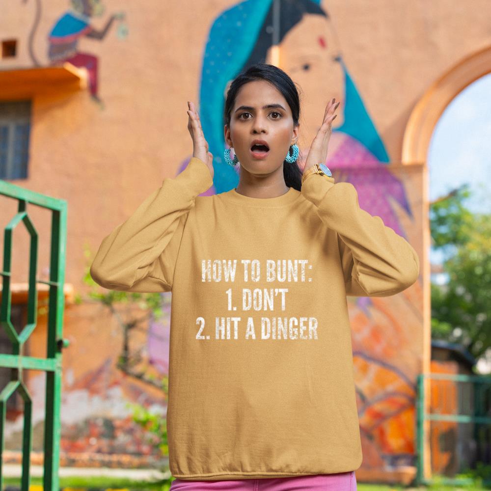 How To Bunt, Hit a Dinger Funny Baseball Player Home Run Fun Sweatshirt