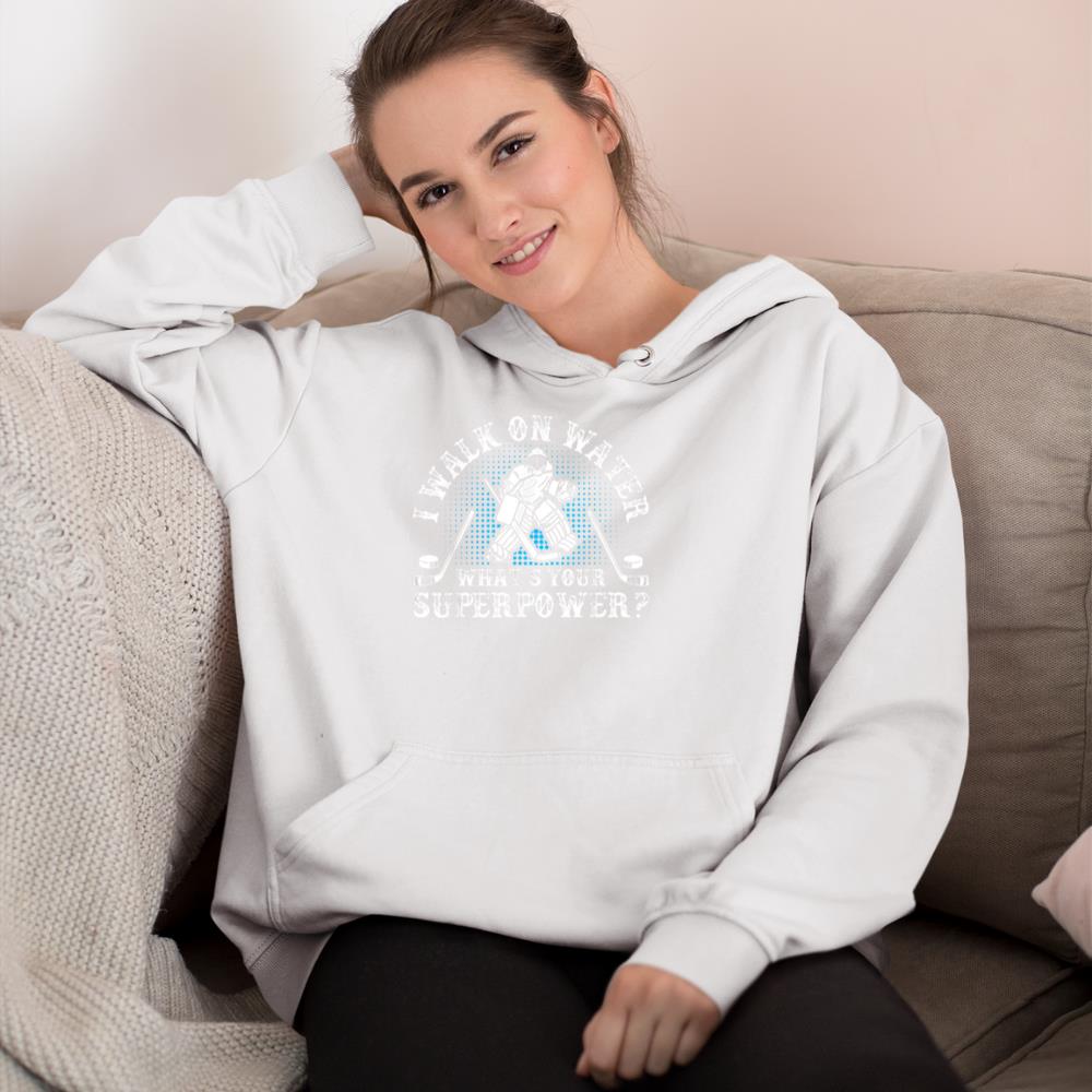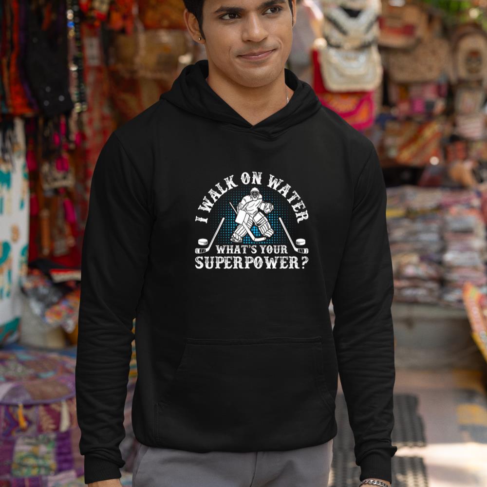 I WALK ON WATER WHAT'S YOUR SUPERPOWER Hockey Player Hoodie