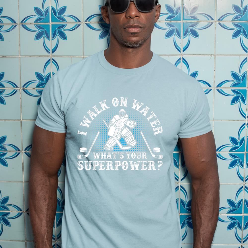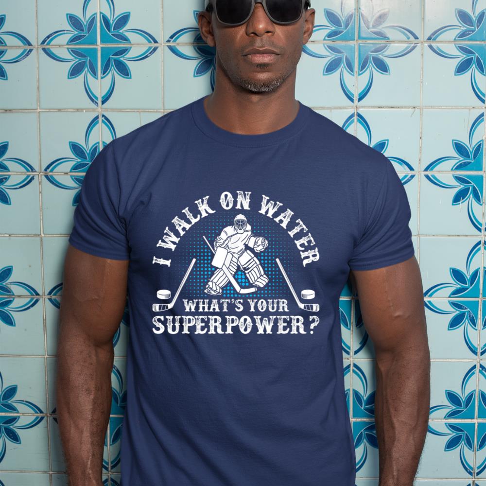 I WALK ON WATER WHAT'S YOUR SUPERPOWER Hockey Player T-Shirt
