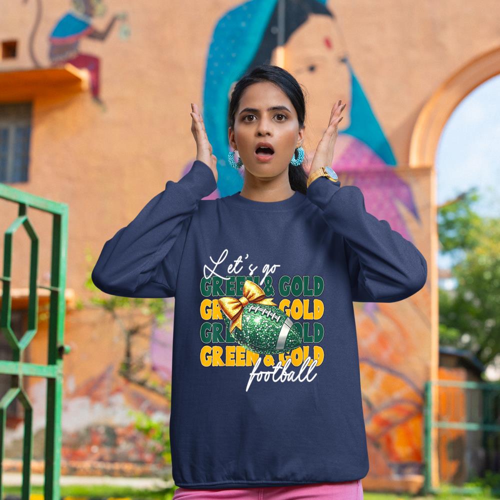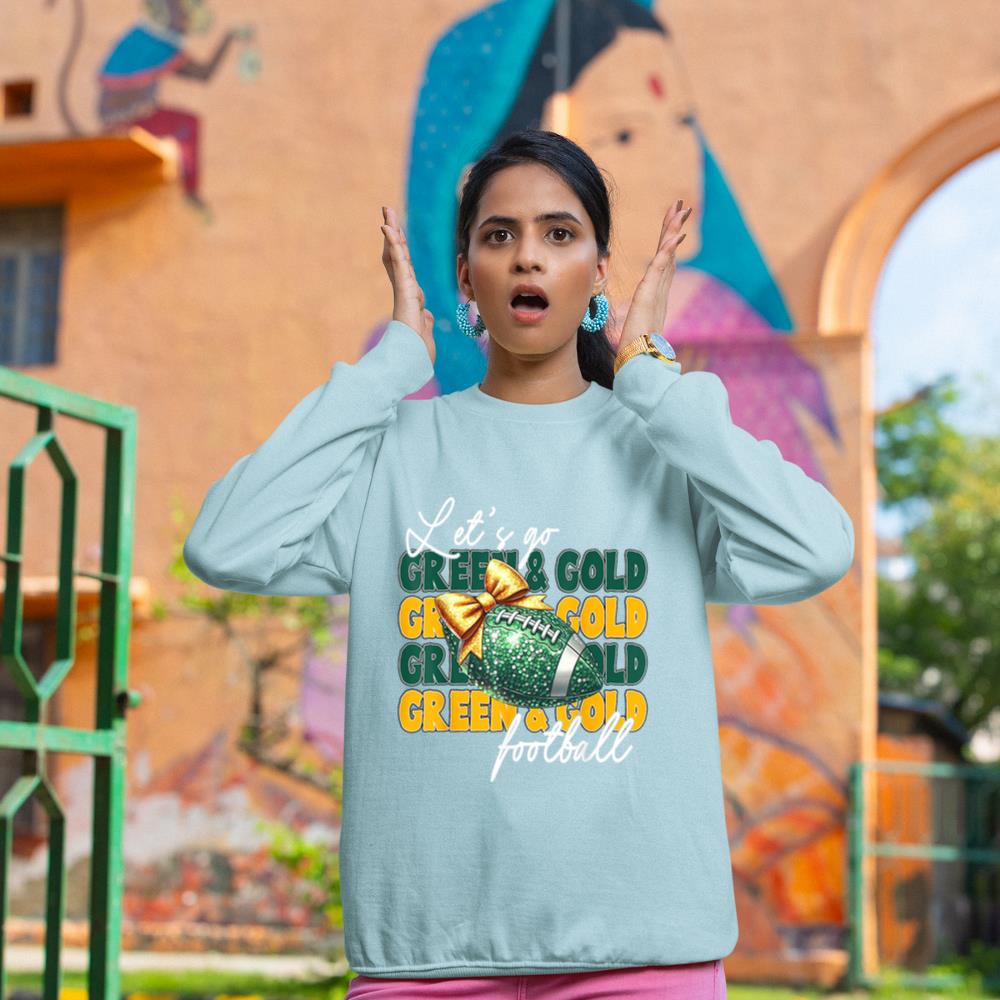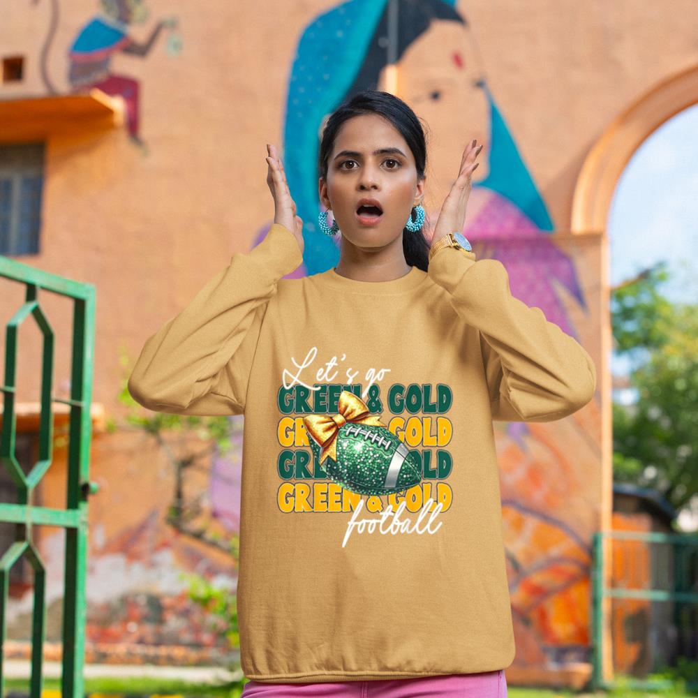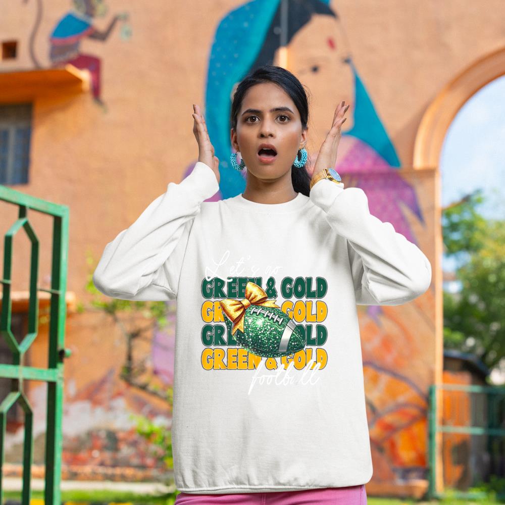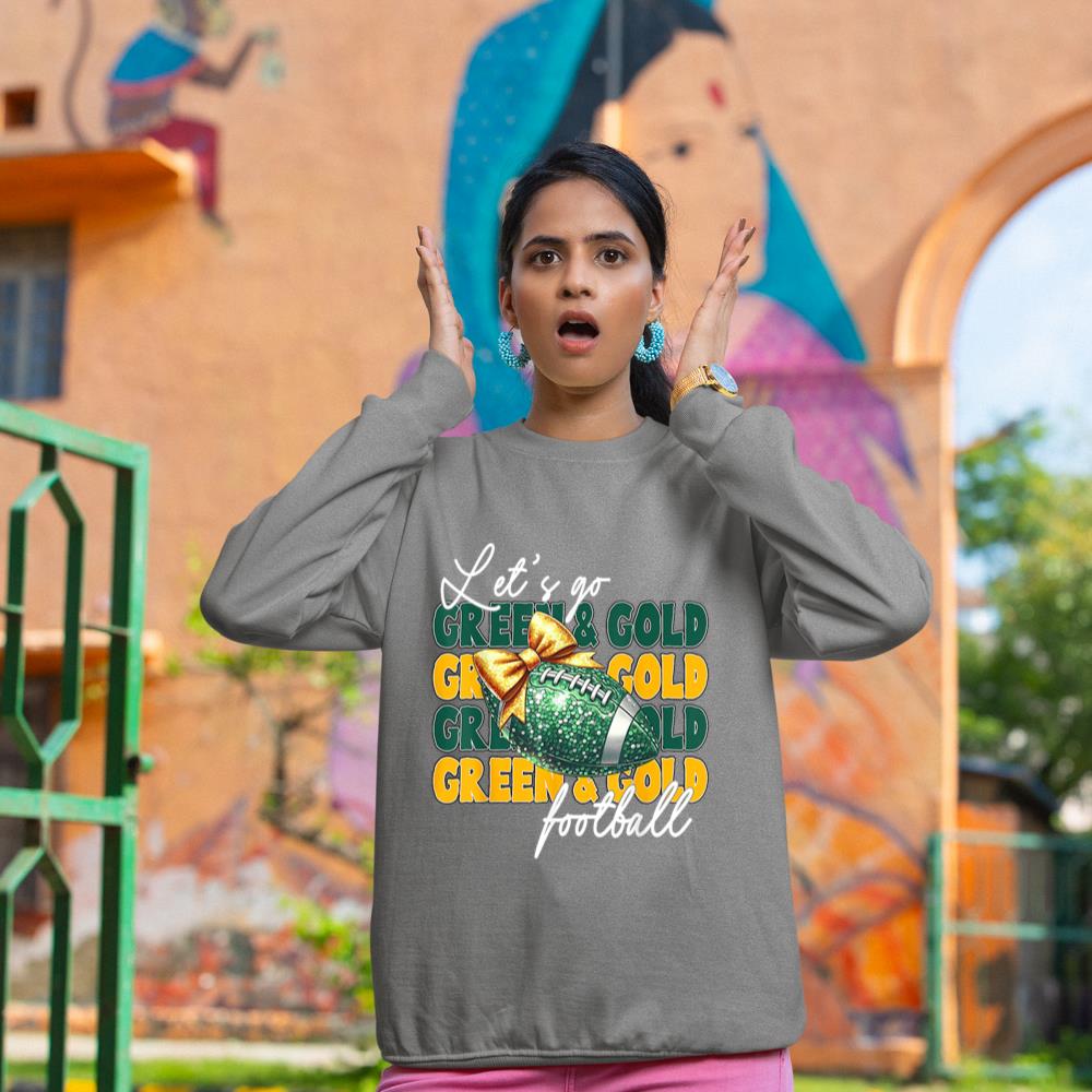 Let’s Go Green & Gold Football Bow Sweatshirt