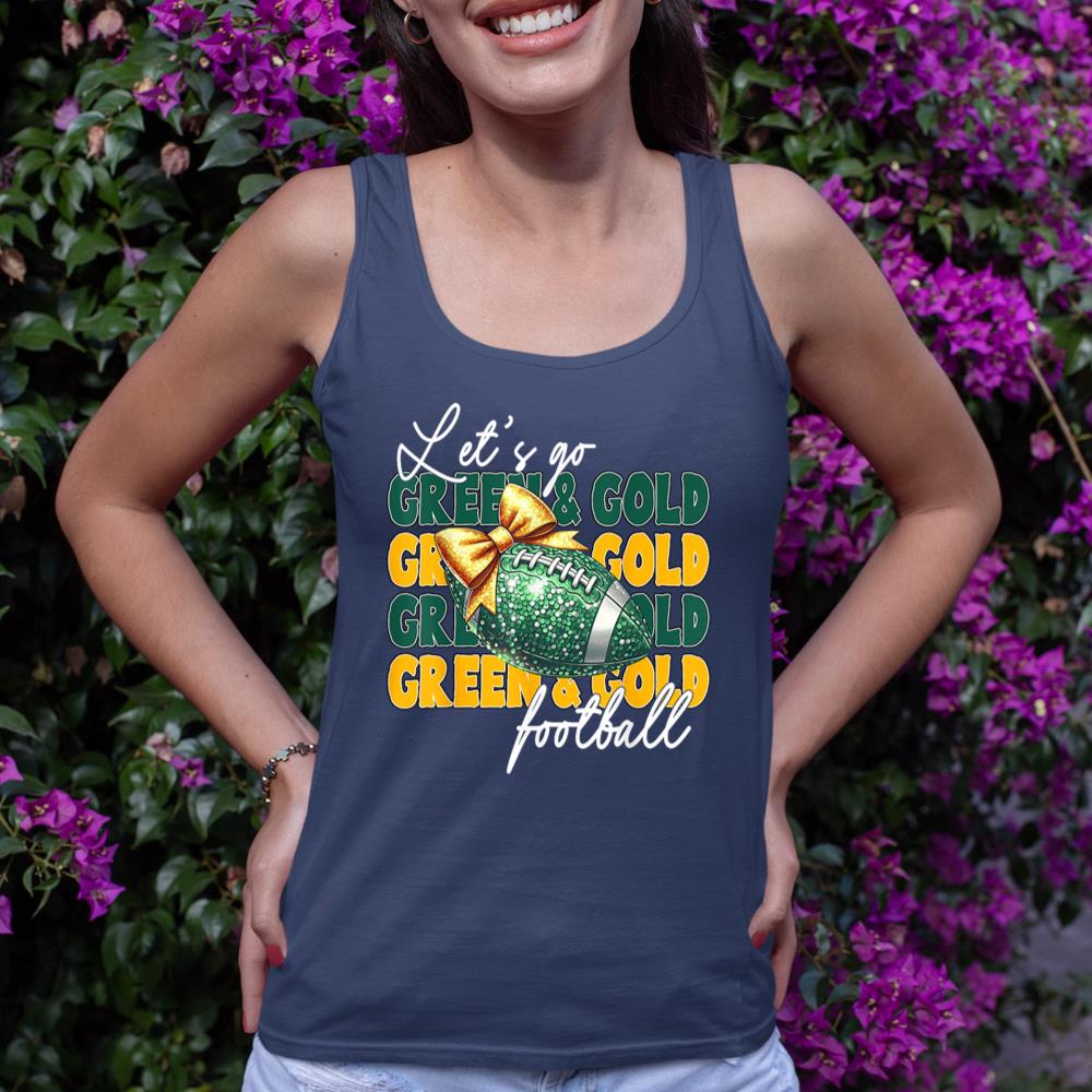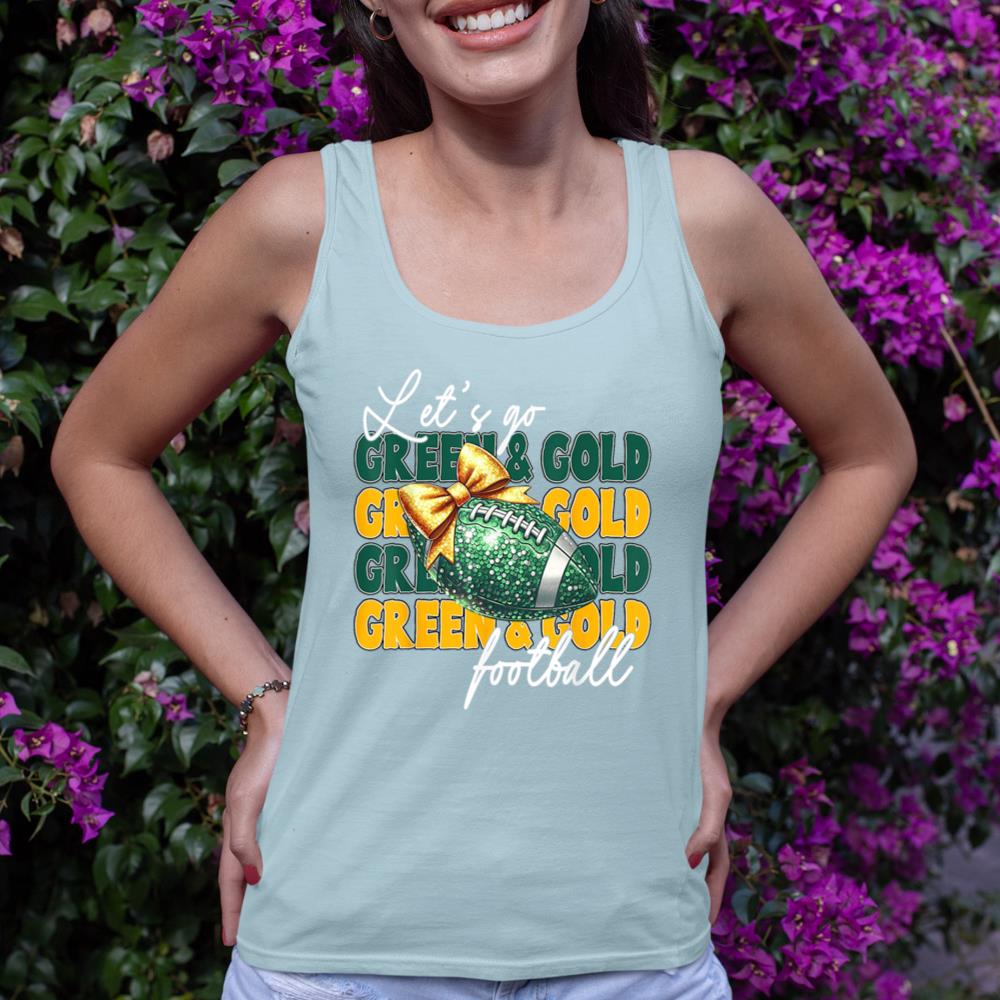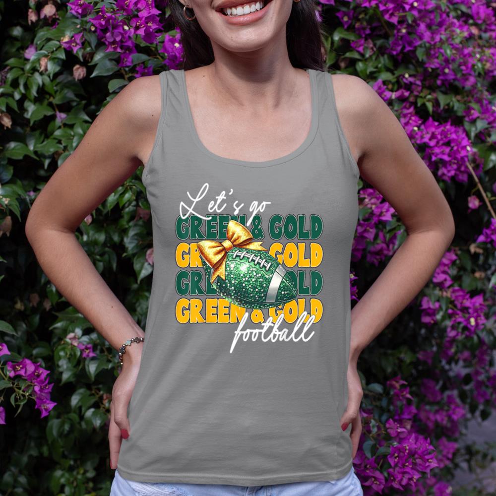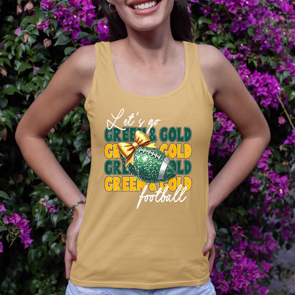 Let’s Go Green & Gold Football Bow Tank Top