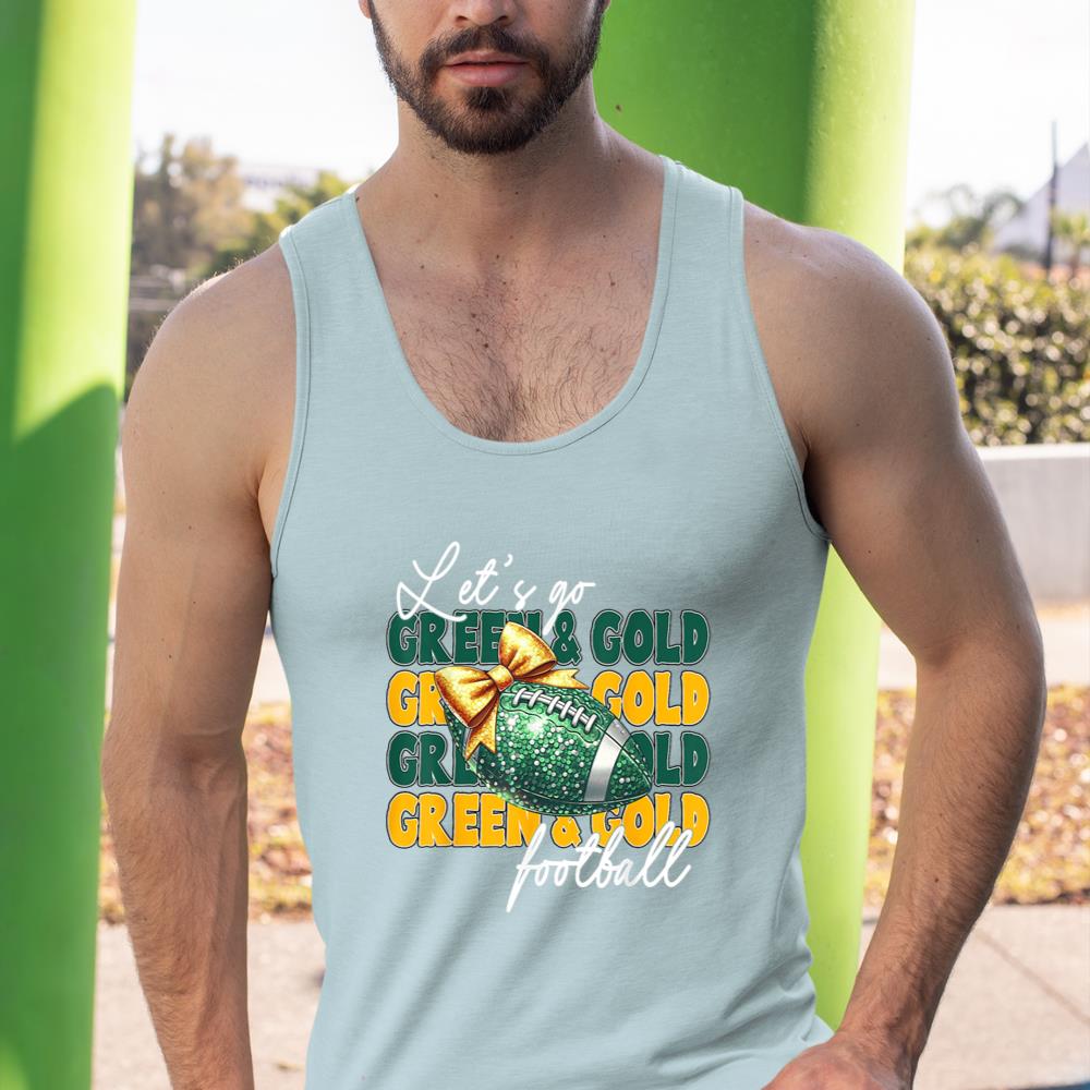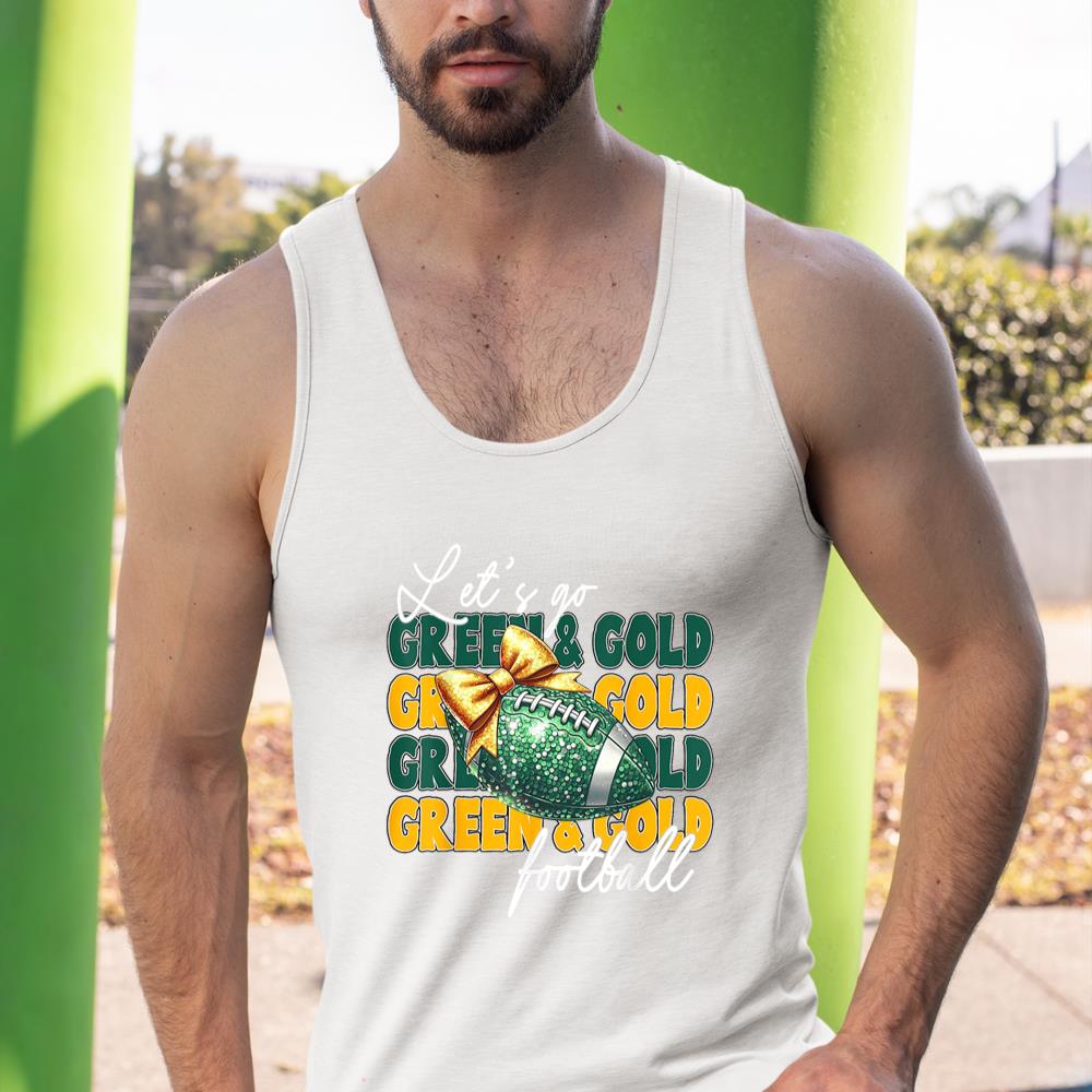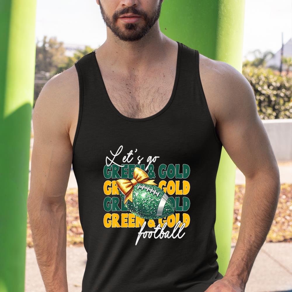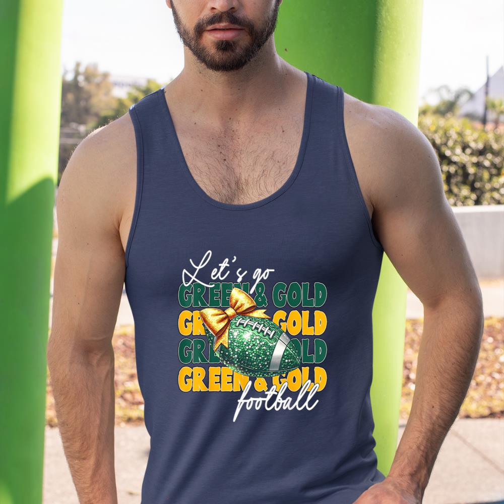 Let’s Go Green & Gold Football Bow Tank Top
