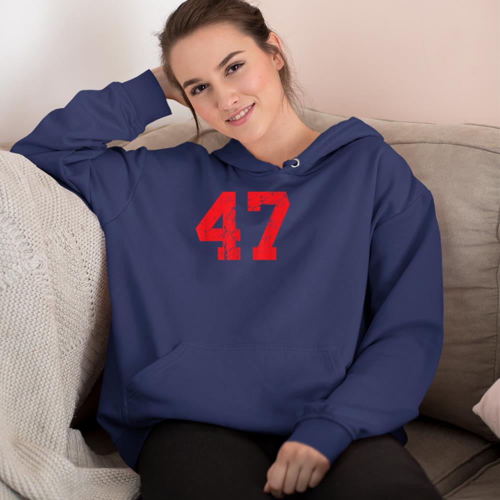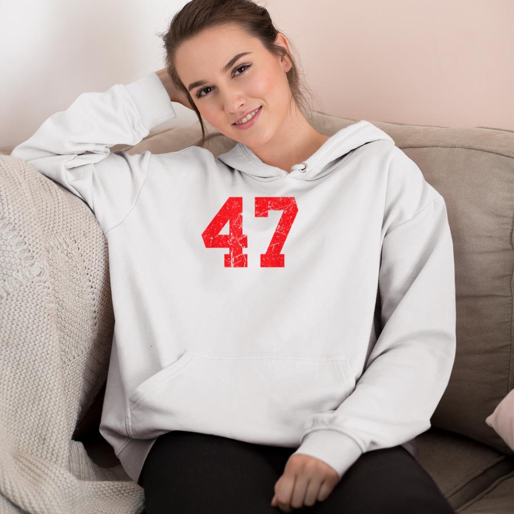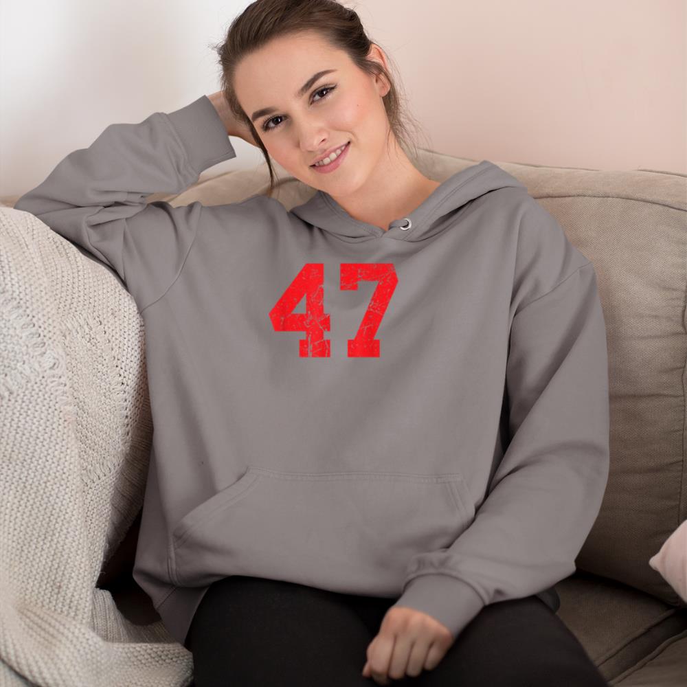 Be the first to review “Number #47 Red Distressed Varsity Number Hoodie”