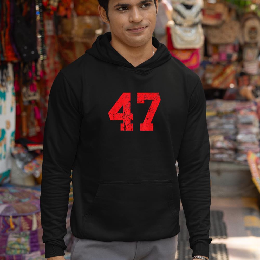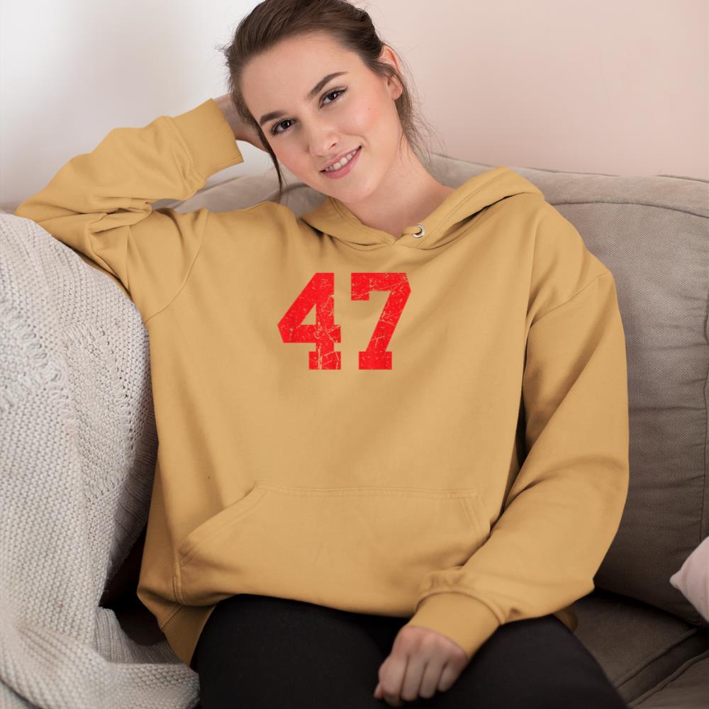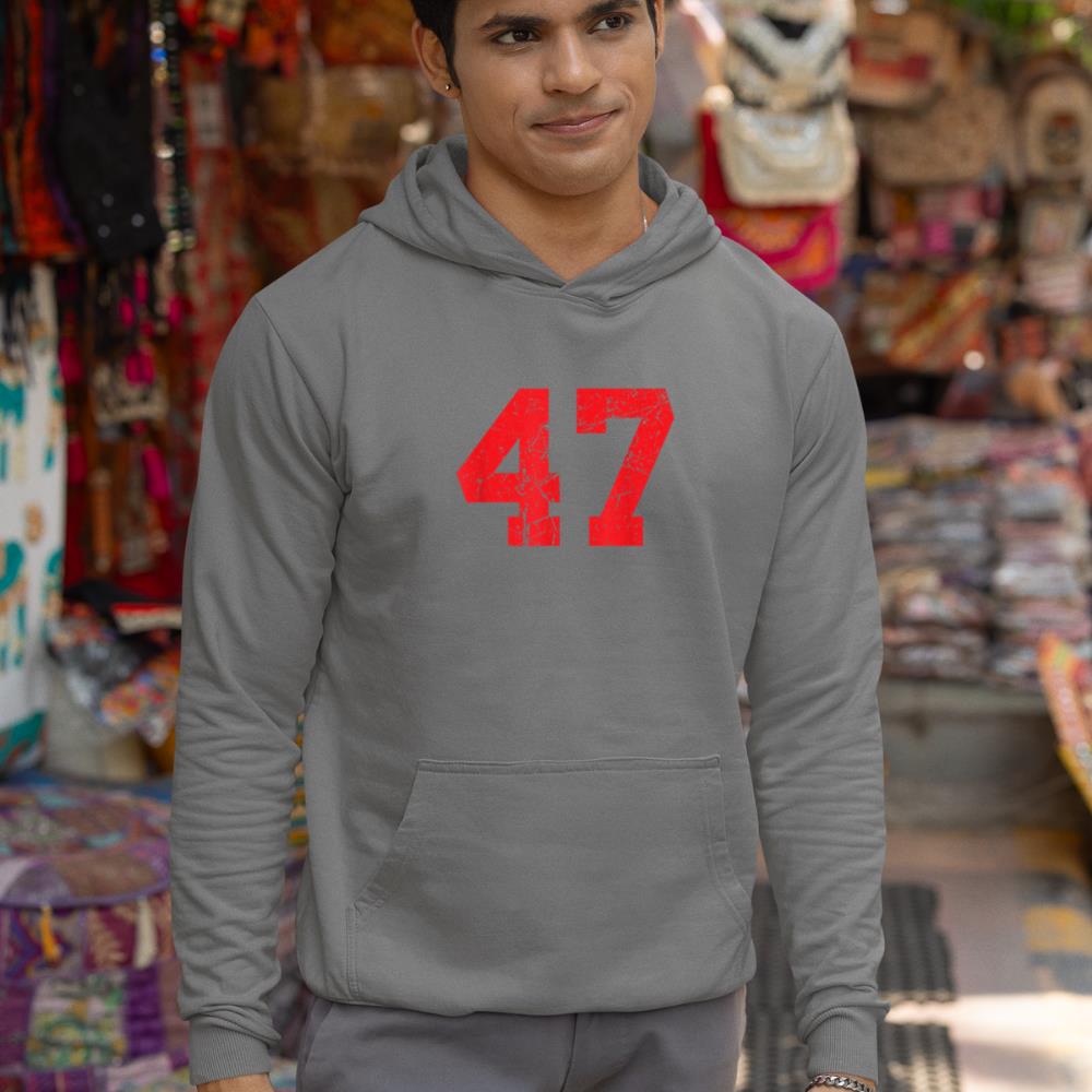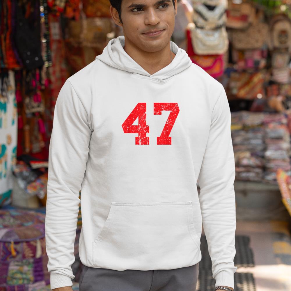 Be the first to review “Number #47 Red Distressed Varsity Number Hoodie”