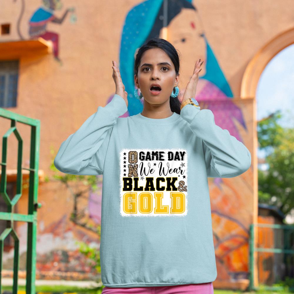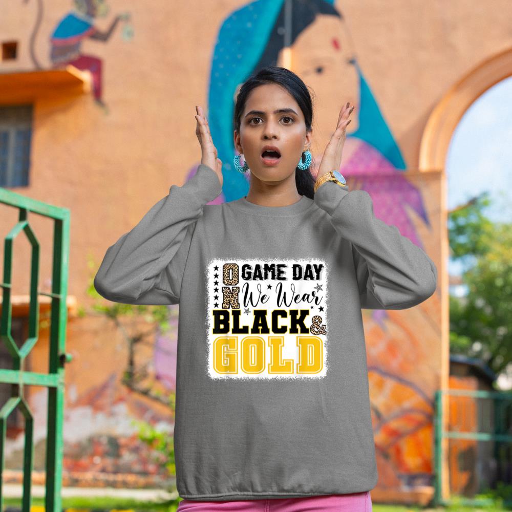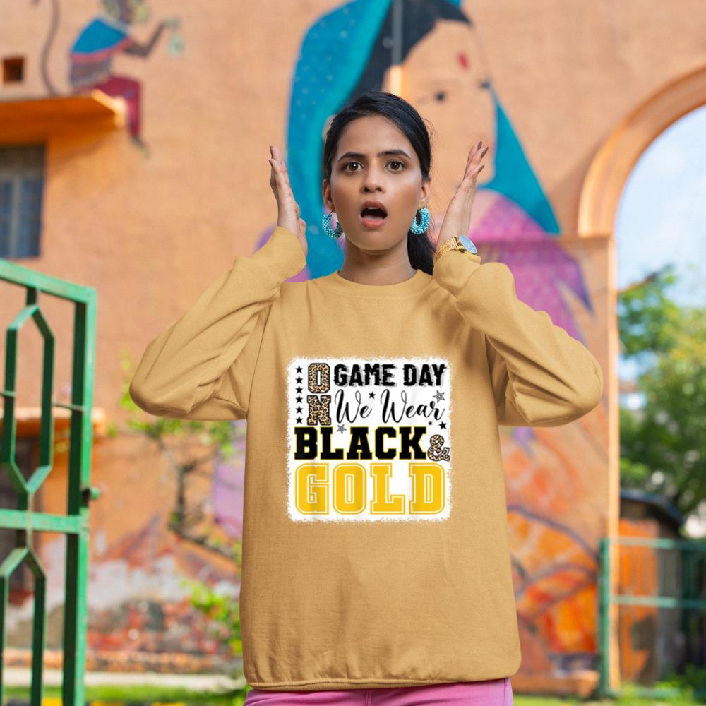 On Gameday Football We Wear Gold and Black Leopard Print Sweatshirt