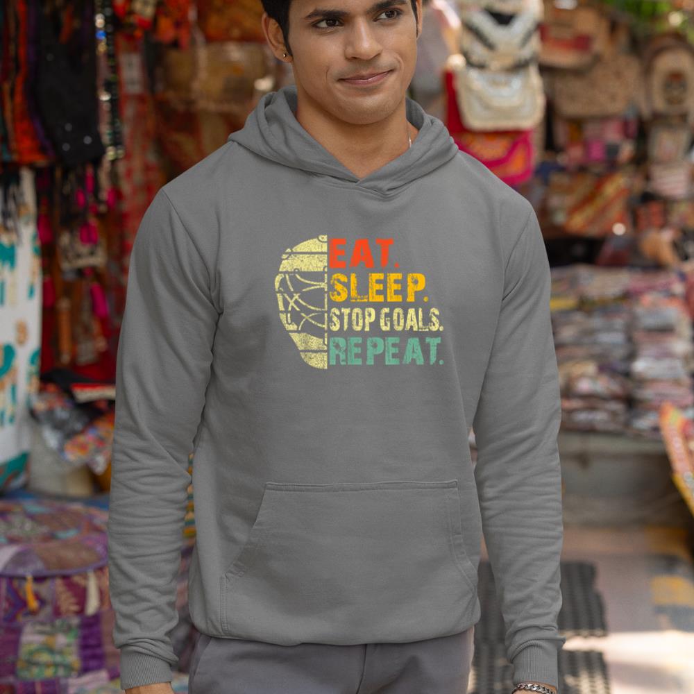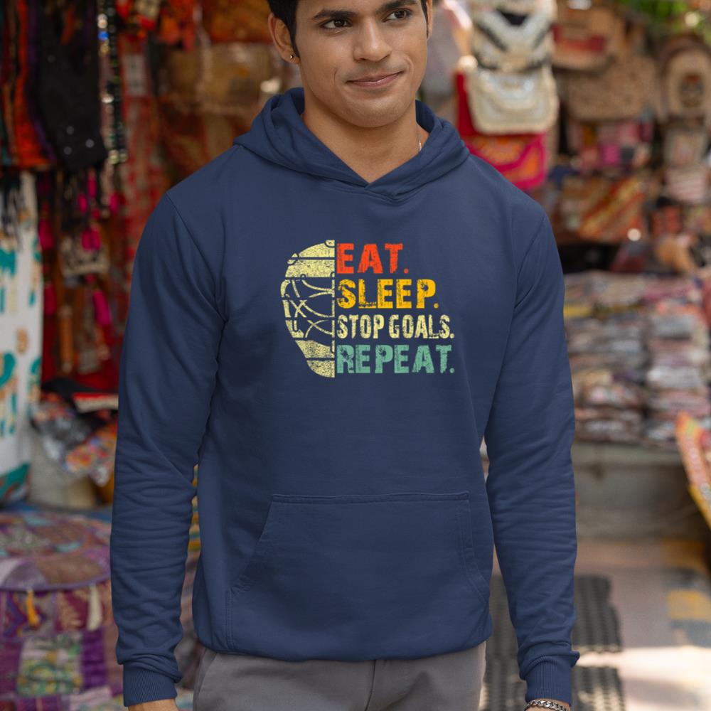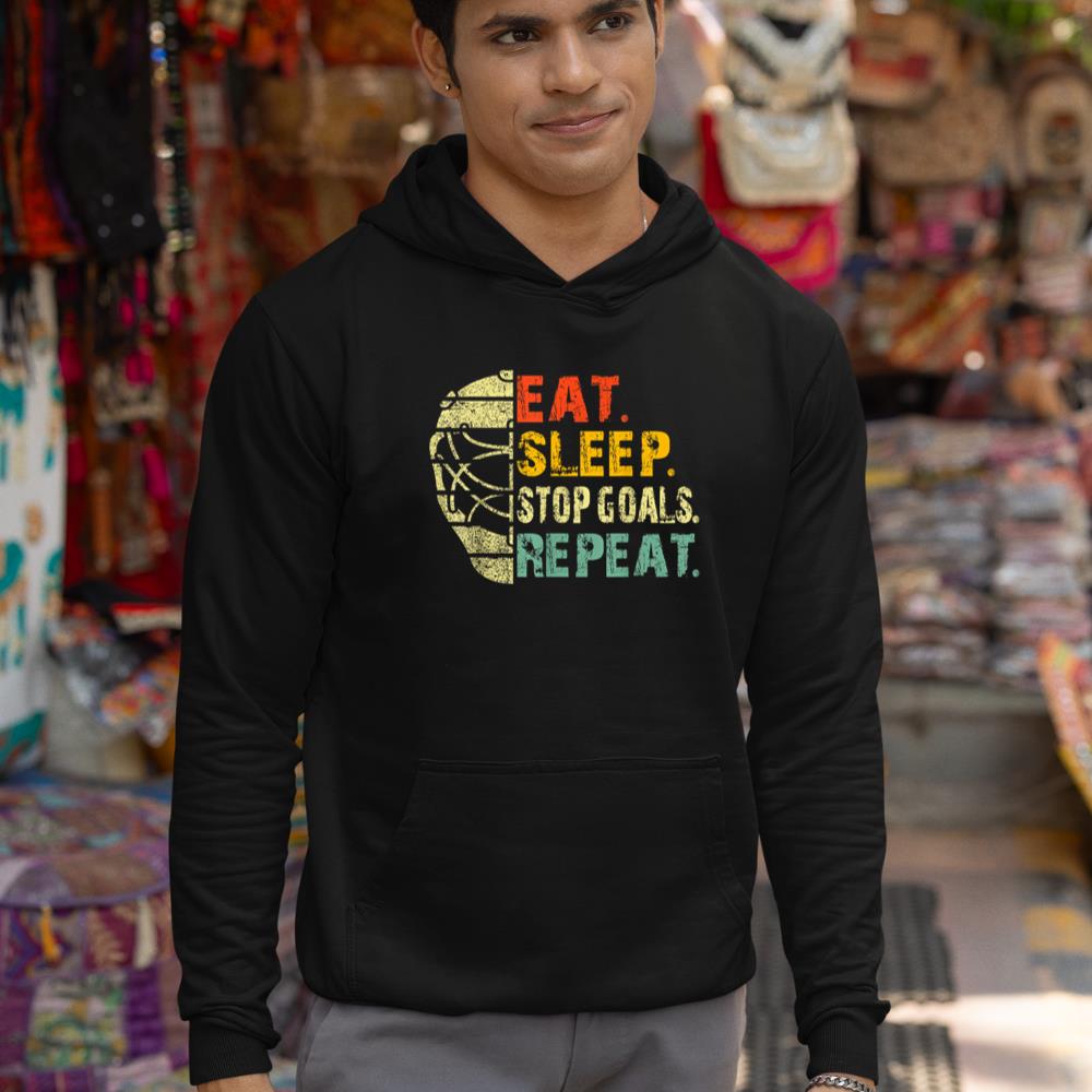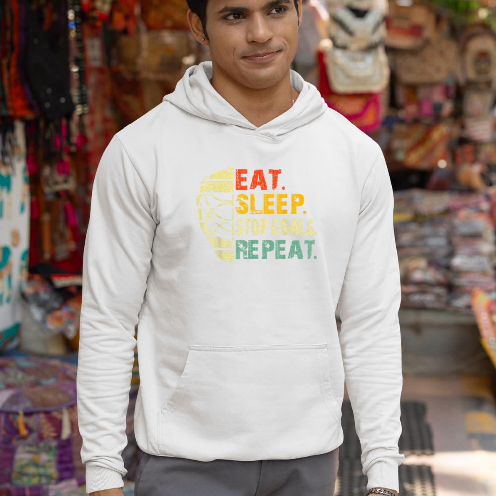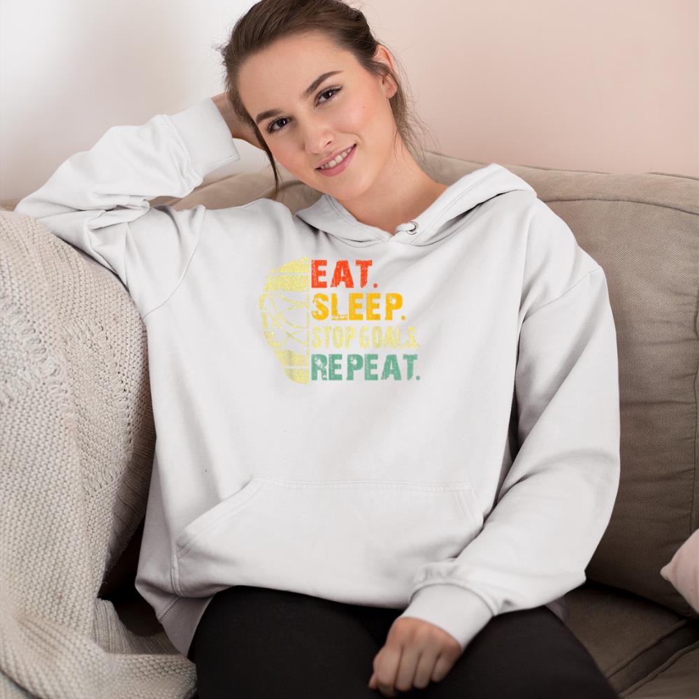 Retro Funny Eat Sleep Stop Goals Repeat Ice Hockey Goalie Hoodie