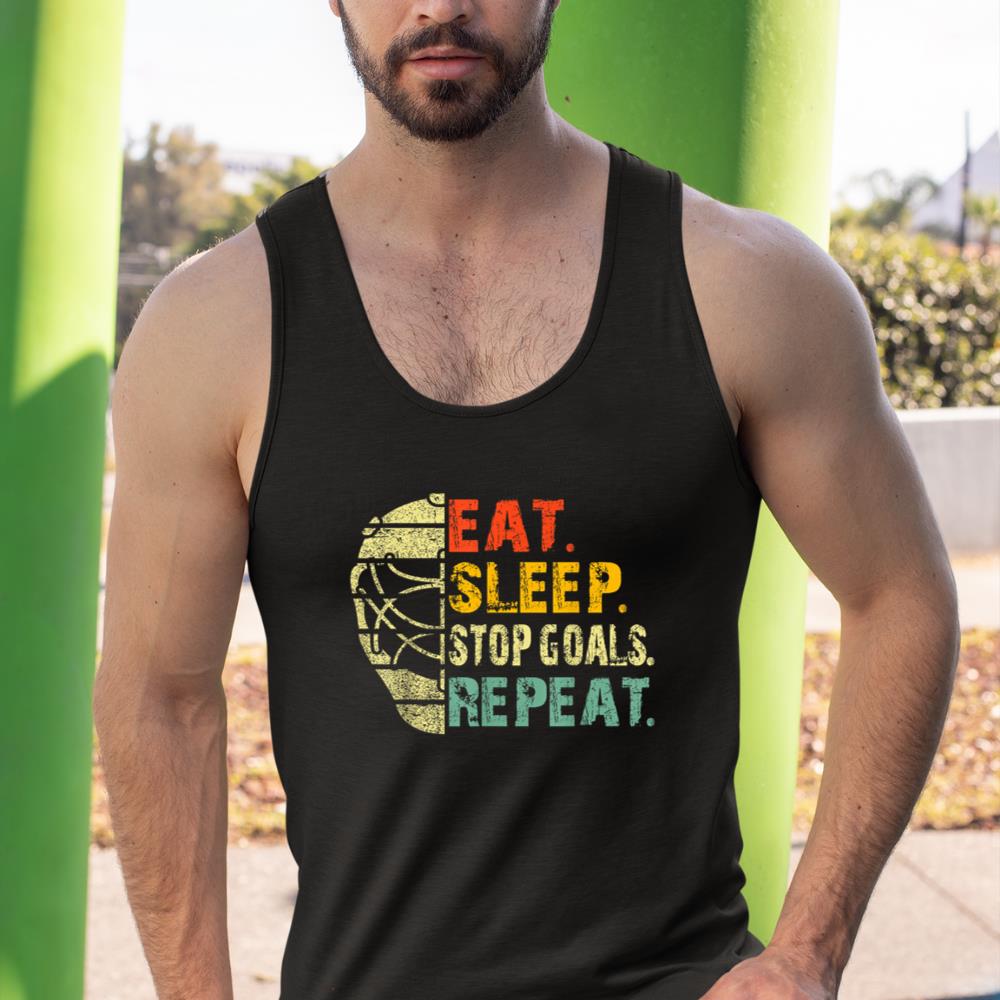 Be the first to review “Retro Funny Eat Sleep Stop Goals Repeat Ice Hockey Goalie Tank Top”