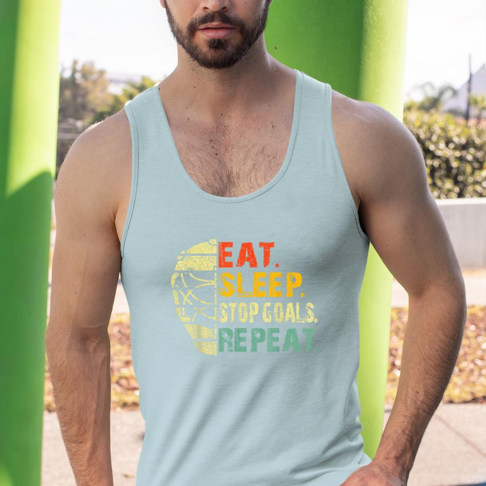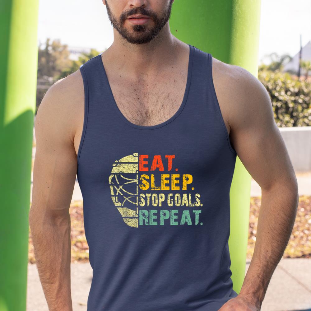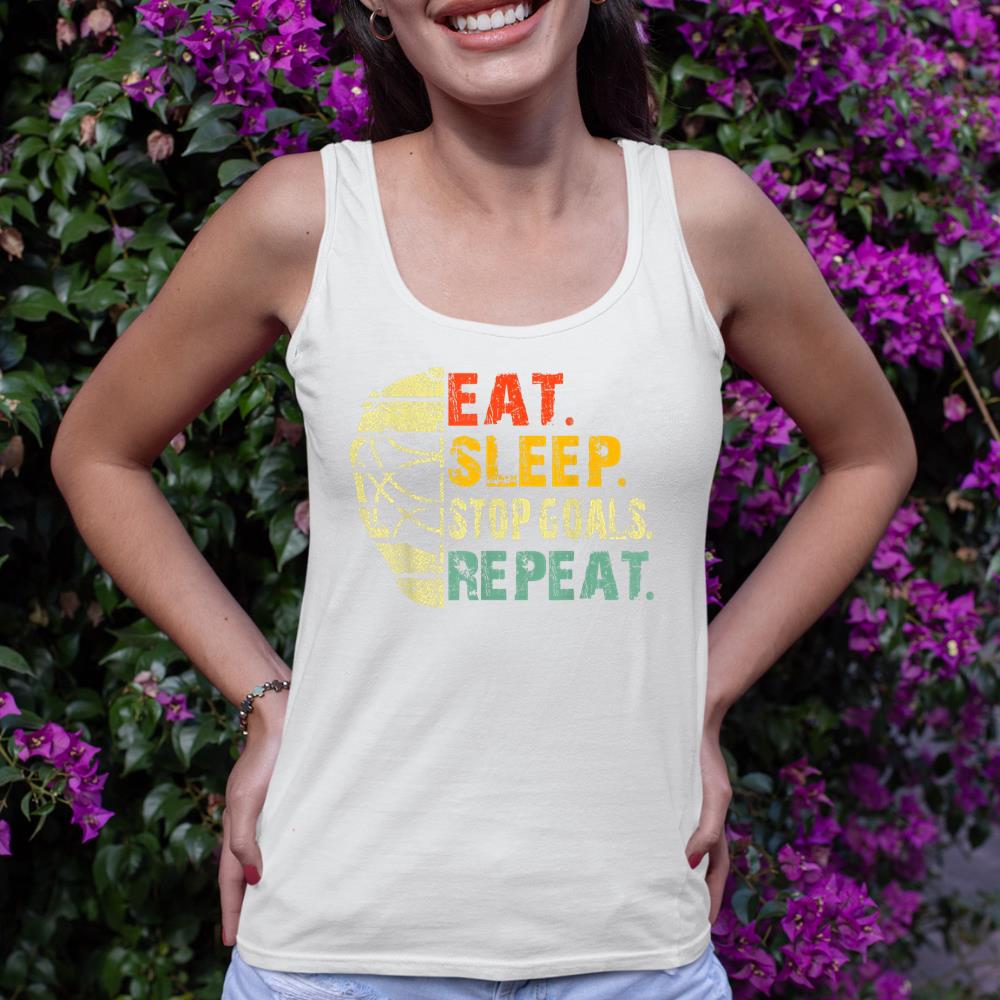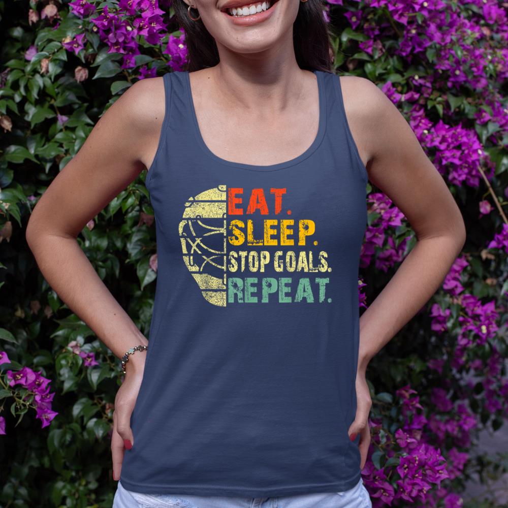 Retro Funny Eat Sleep Stop Goals Repeat Ice Hockey Goalie Tank Top