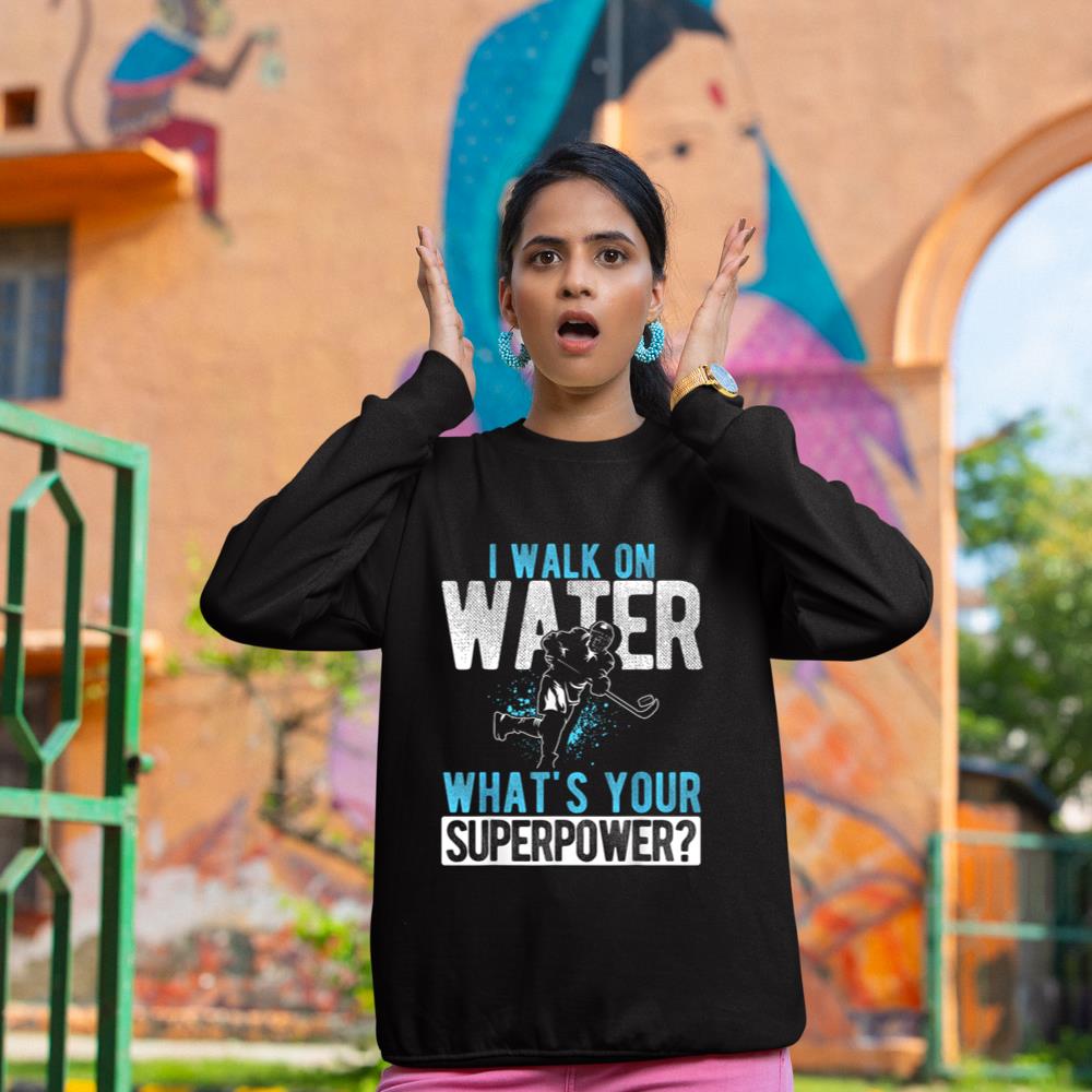I WALK ON WATER WHAT’S YOUR SUPERPOWER Hockey Player Sweatshirt