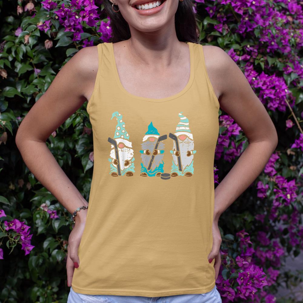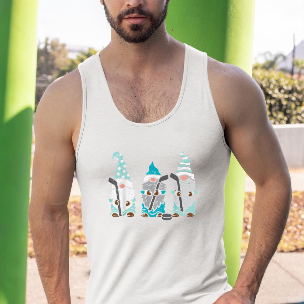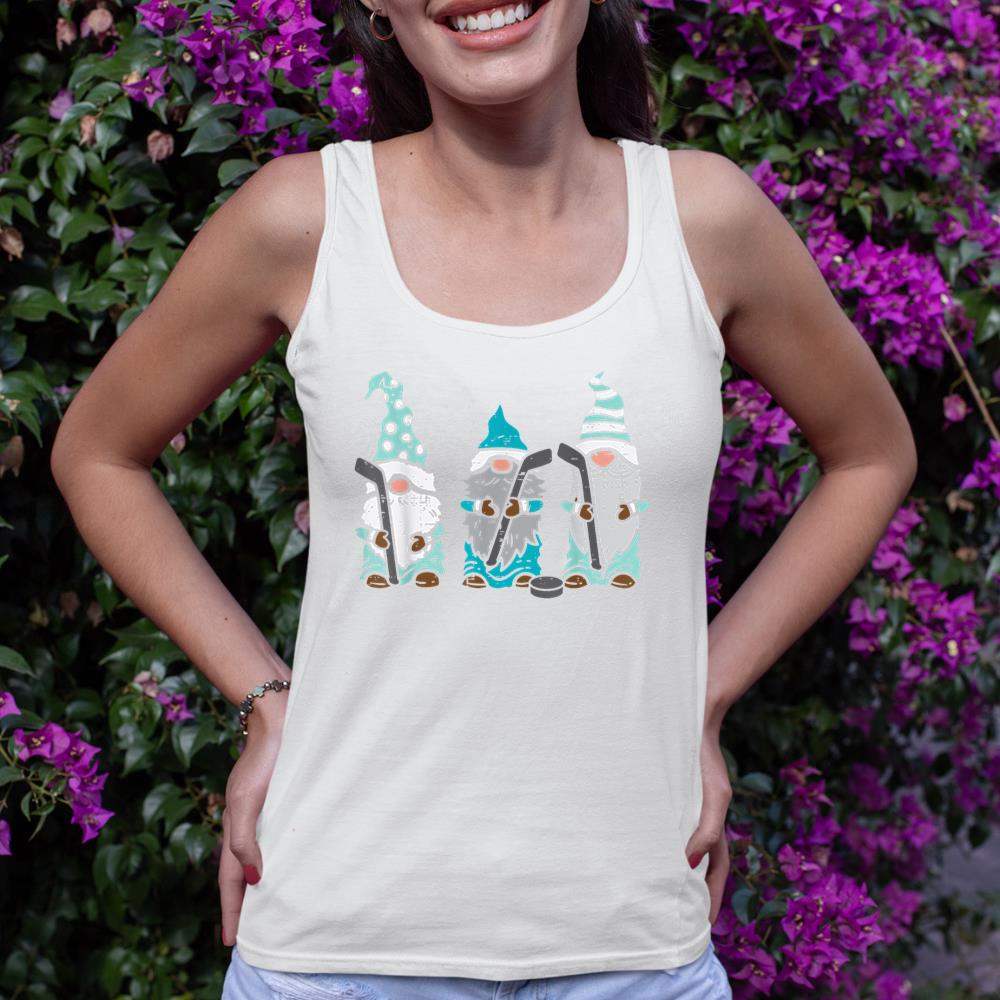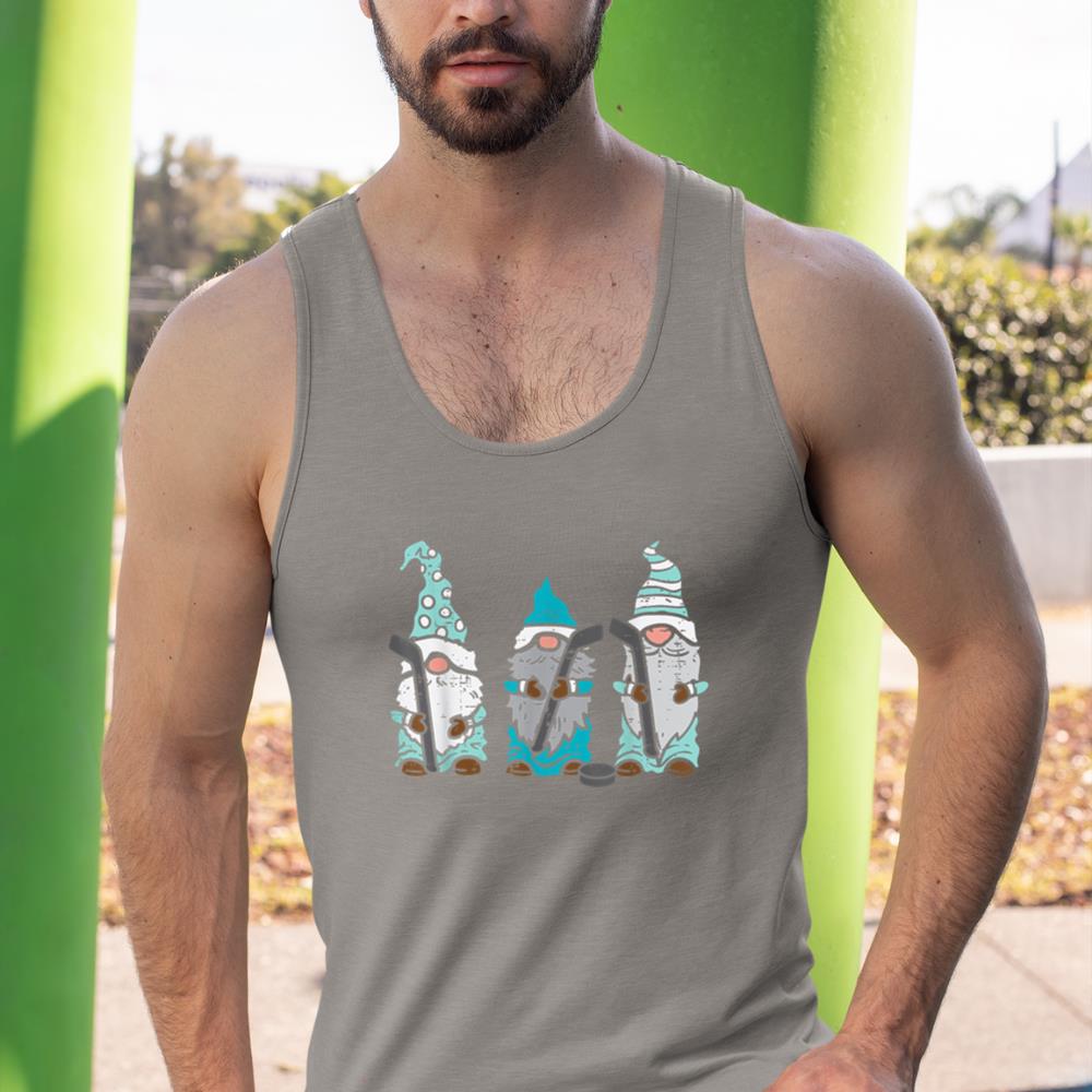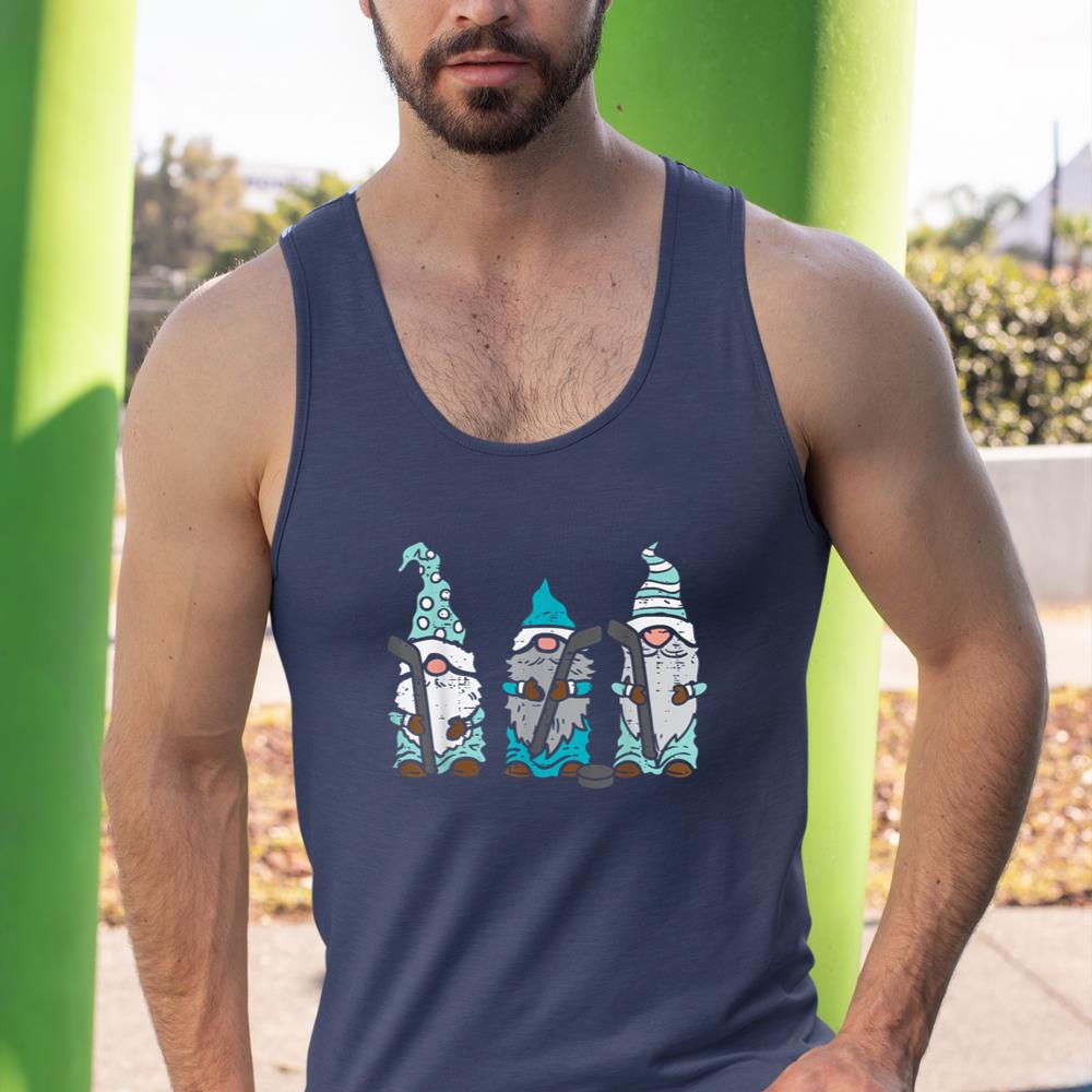 Three Nordic Gnomes Ice Hockey Tomte Nisse Player Goalie Tank Top