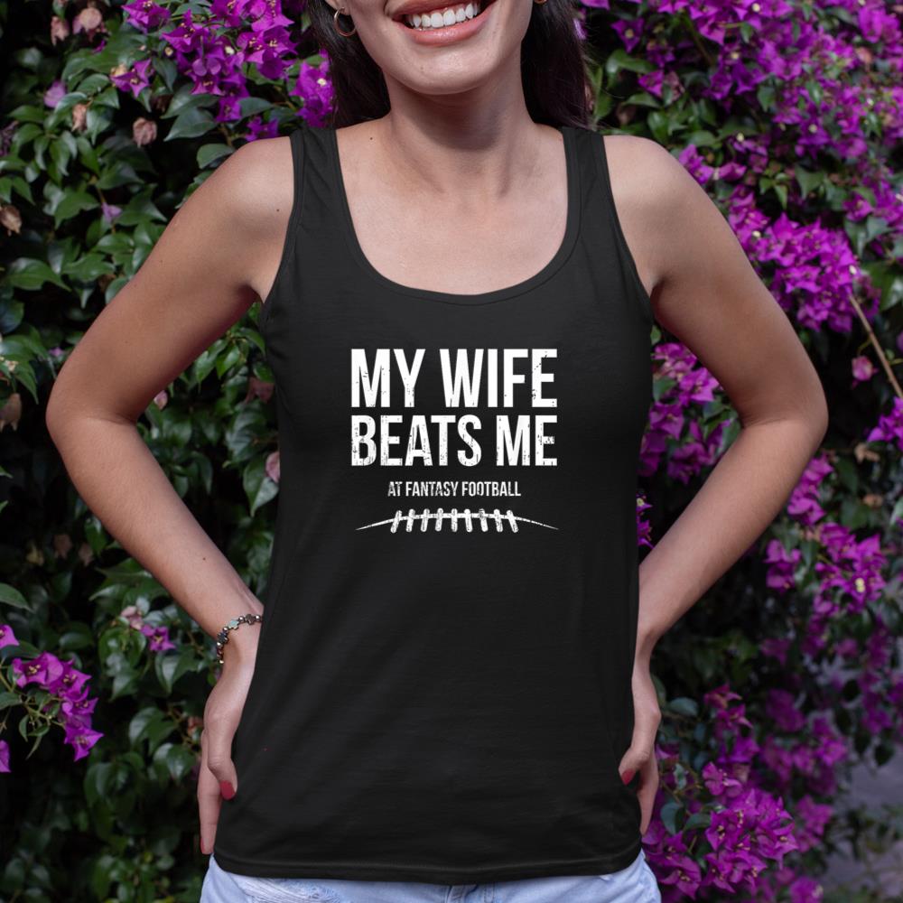 My Wife Beats Me at Fantasy Football – Funny Hidden Message Tank Top