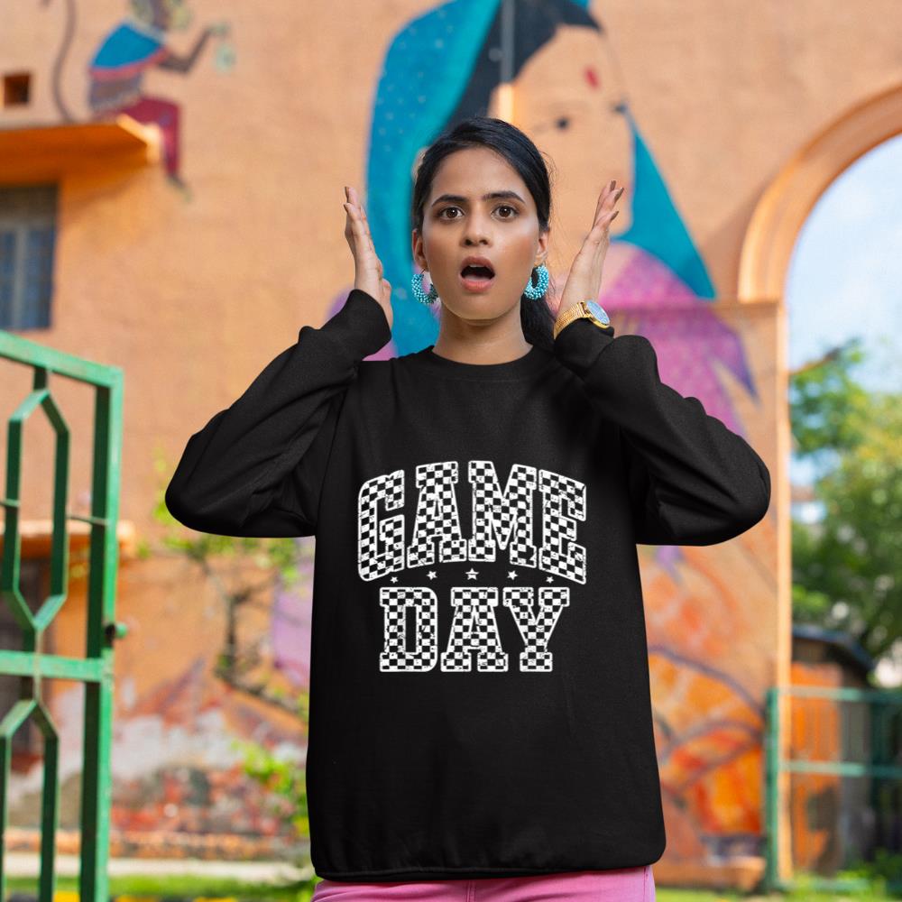 Football Game Day Checkered Men Women Kids Retro Graphic Sweatshirt