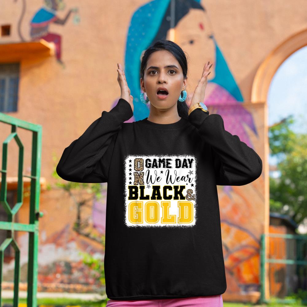 On Gameday Football We Wear Gold and Black Leopard Print Sweatshirt