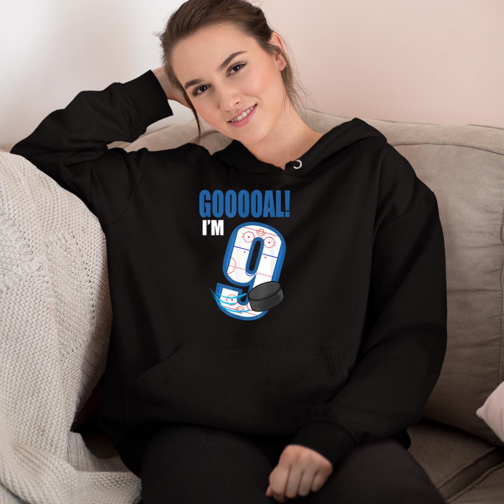 Hockey Player Goal Gooooal I’m 9 Ice Hockey Birthday Hoodie