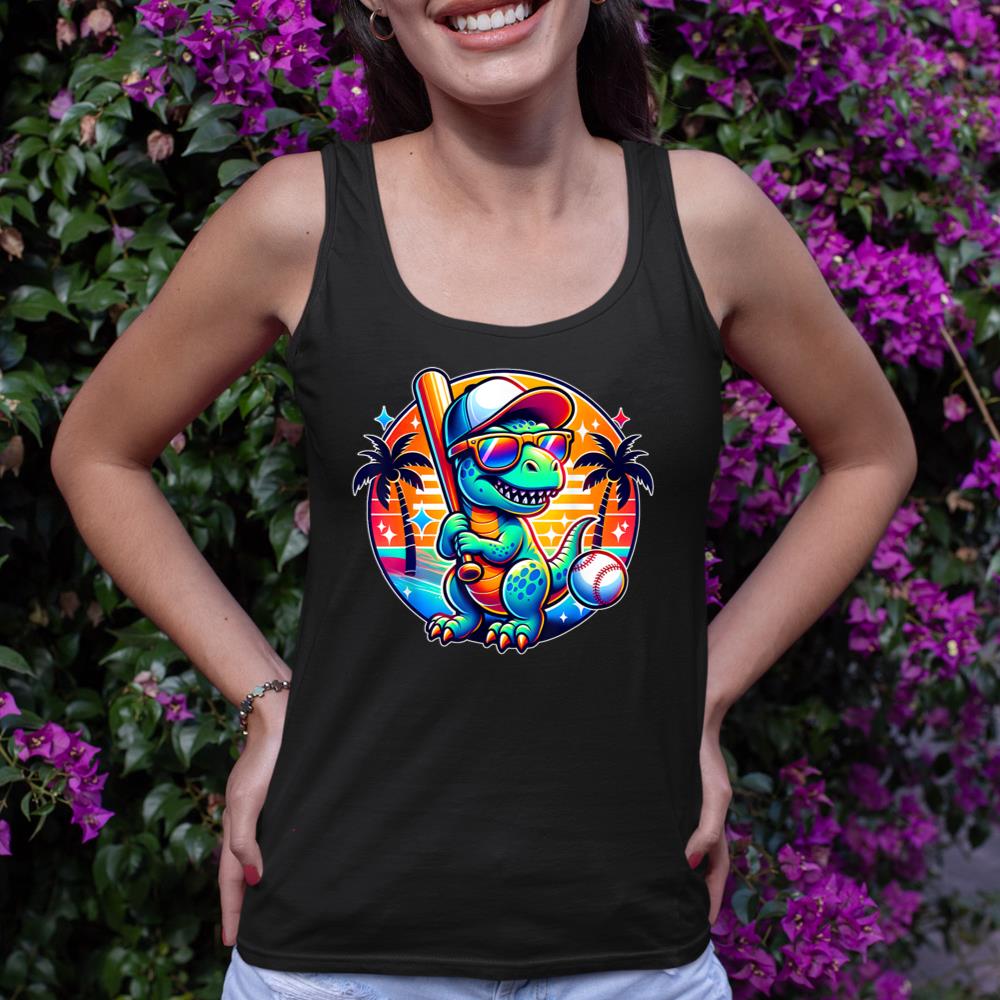 Funny T-rex Dinosaur Baseball Player Kids Boys Toddlers Tank Top
