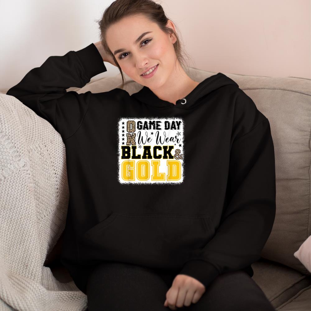 On Gameday Football We Wear Gold and Black Leopard Print Hoodie