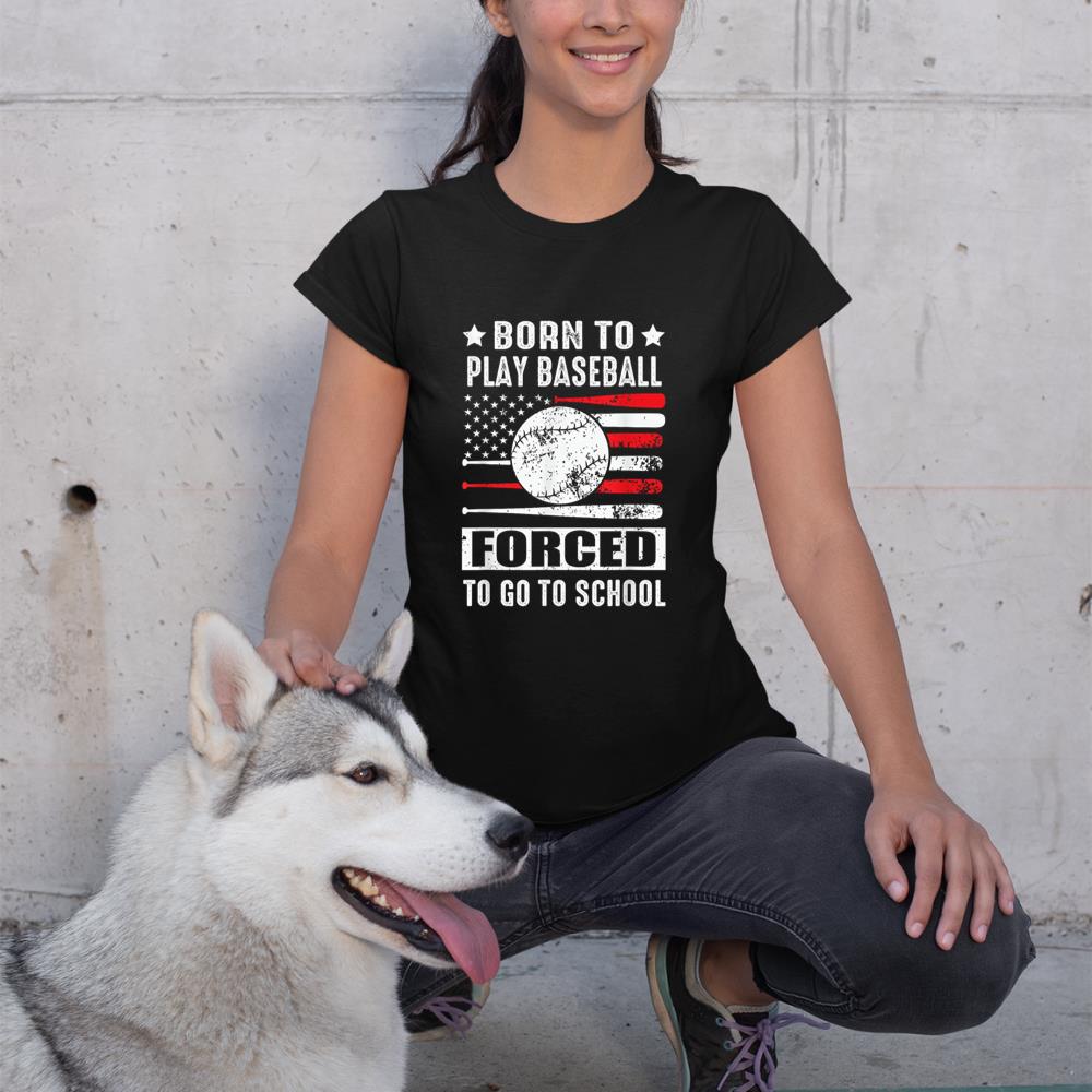 Born To Play Baseball Forced To Go To School USA Flag T-Shirt