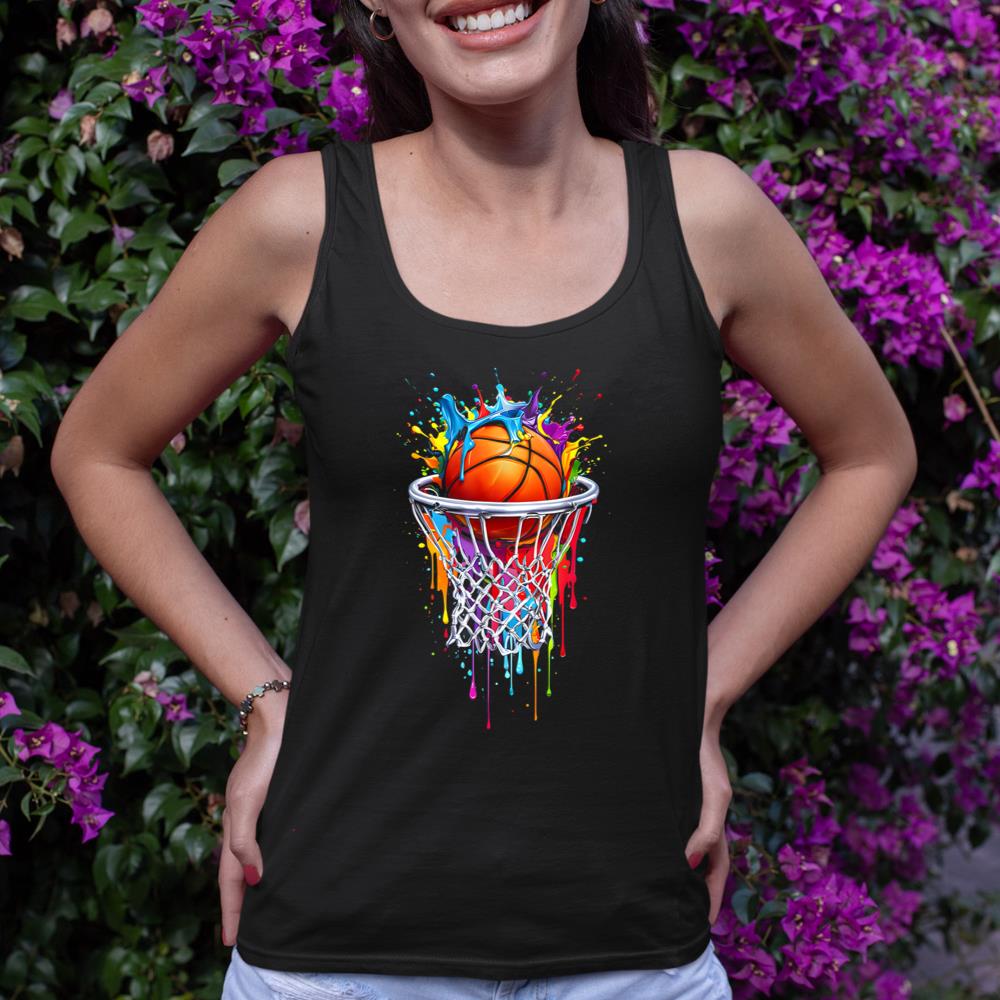 Colorful Basketball Dripping Splash Funny Players Design Tank Top