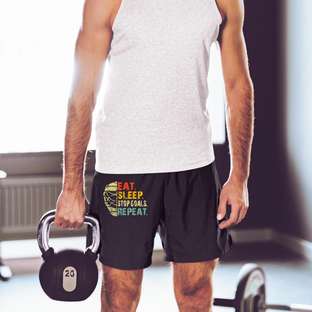 Retro Funny Eat Sleep Stop Goals Repeat Ice Hockey Goalie Short
