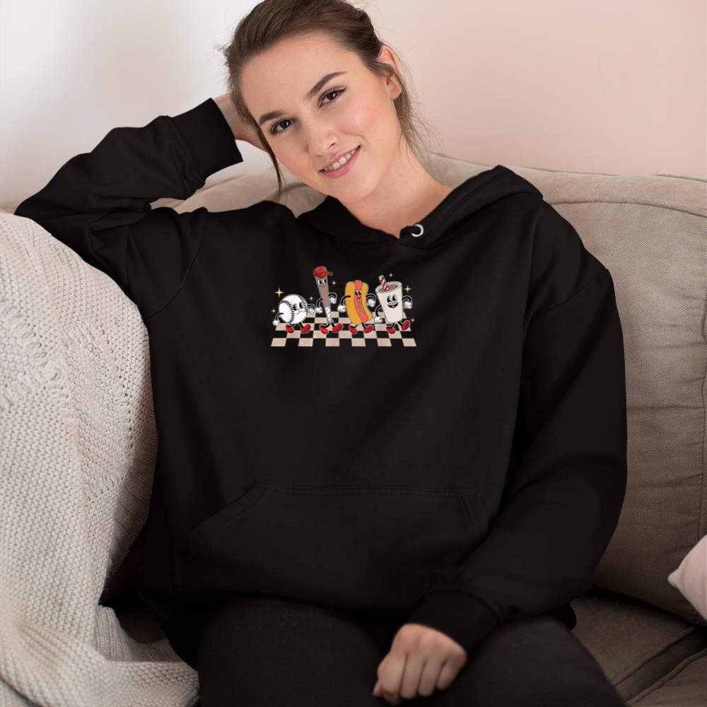 Retro Baseball Food and Drink Baseball Season Lover Funny Hoodie
