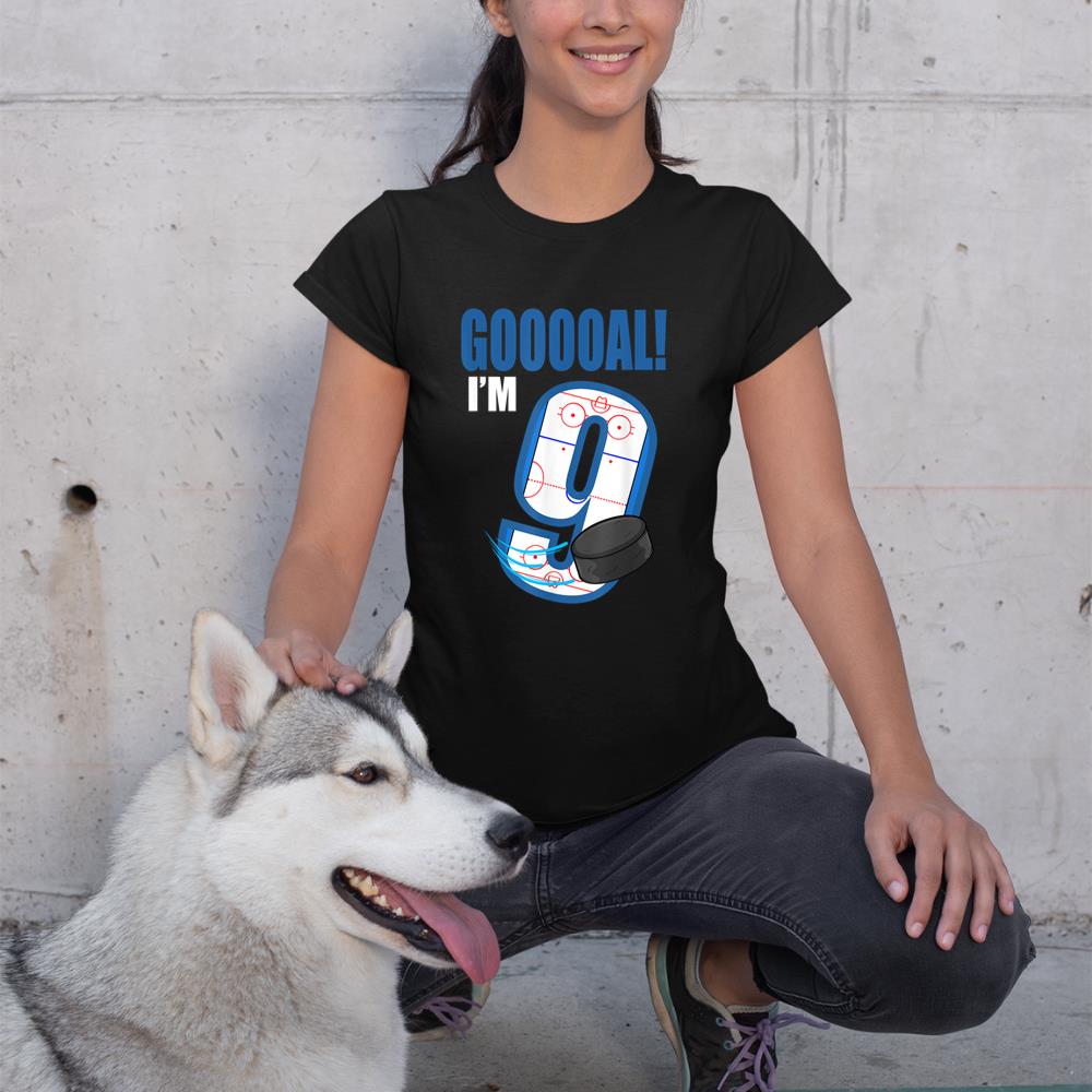 Hockey Player Goal Gooooal I’m 9 Ice Hockey Birthday T-Shirt