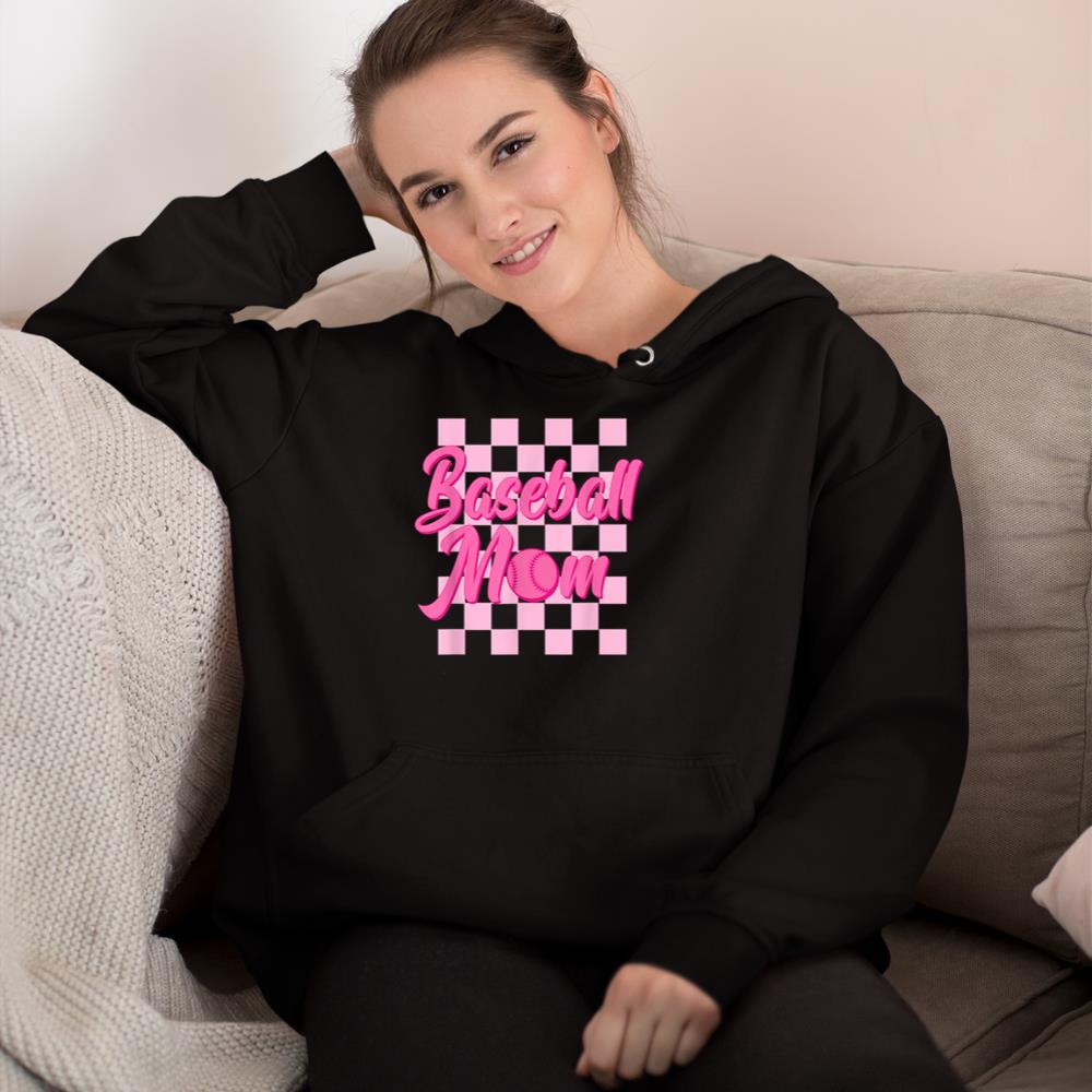 Baseball Mom Black And Pink Grid Sports Mother Mama Player Hoodie