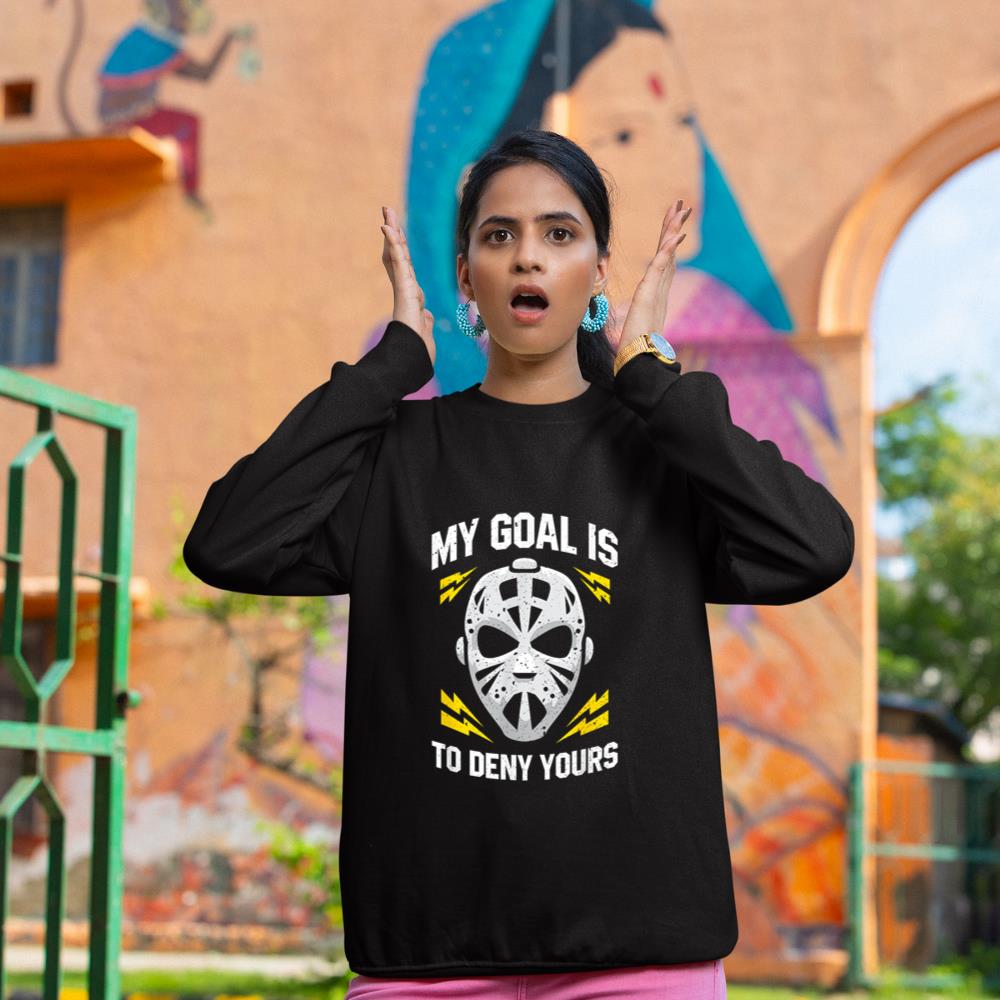Funny Ice Hockey Goalie My Goal Is To Deny Yours Hockey Sweatshirt