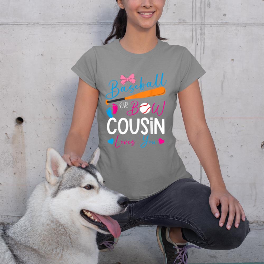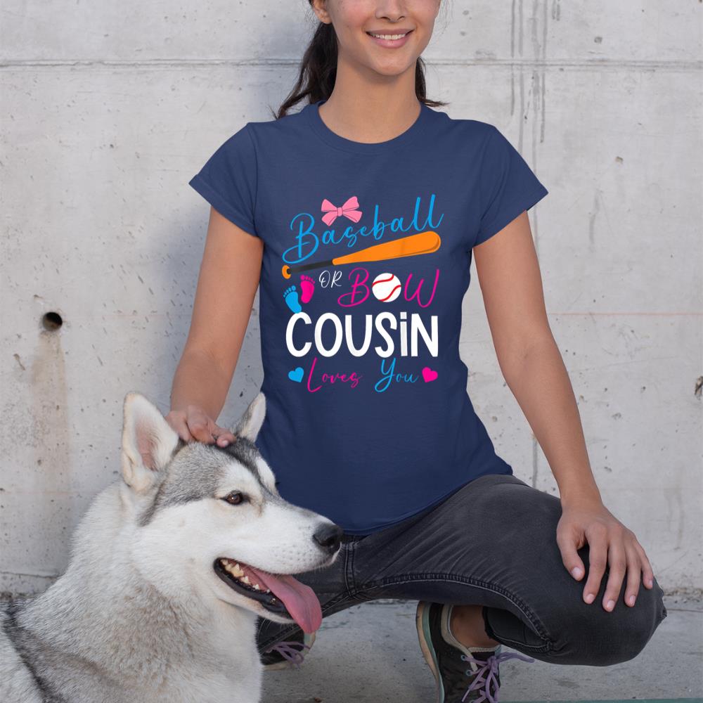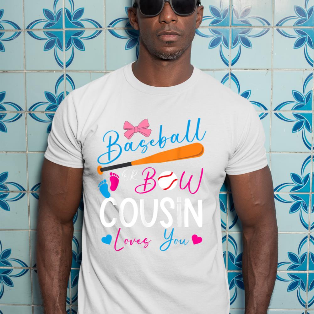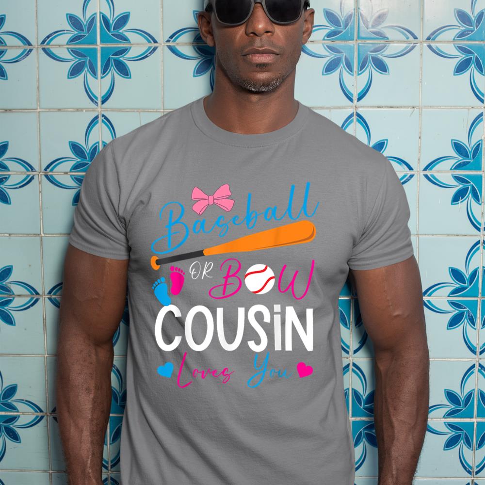 Baseball or Bow Cousin Loves You Baseball Gender Reveal T-Shirt