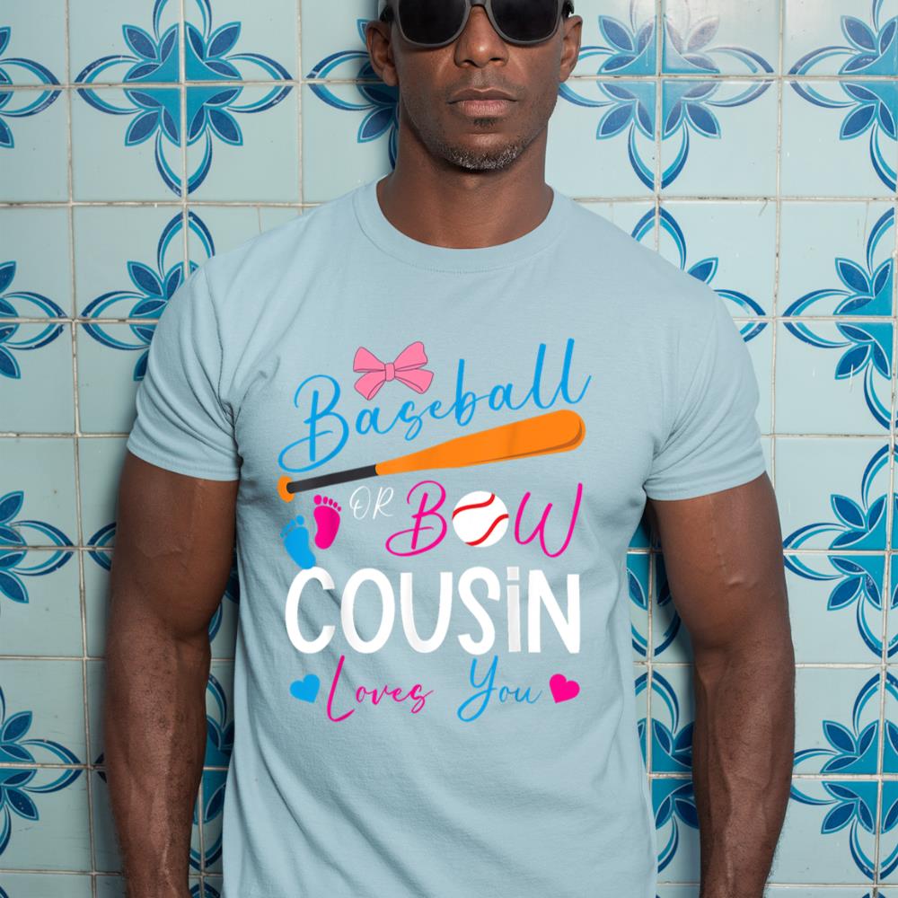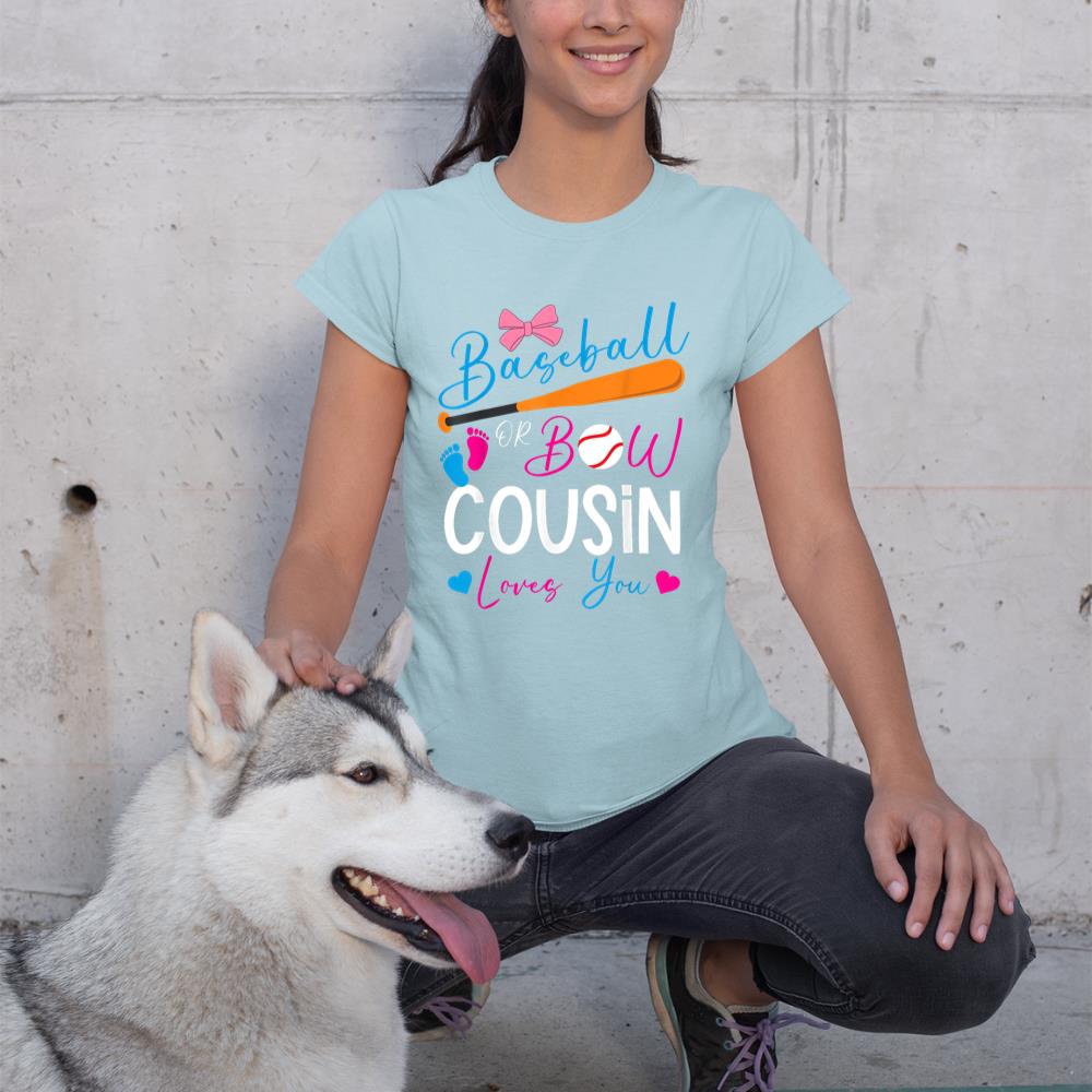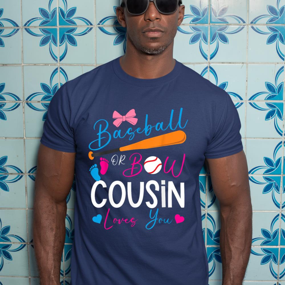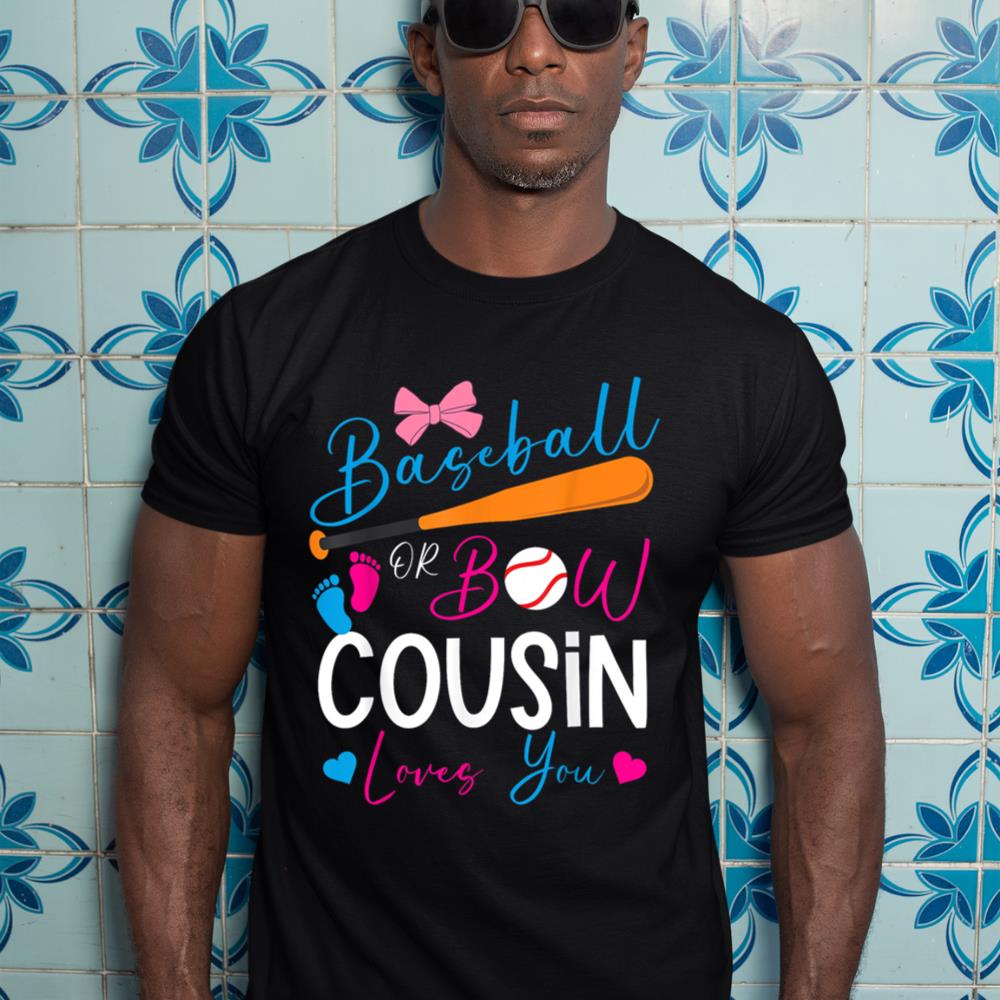 Baseball or Bow Cousin Loves You Baseball Gender Reveal T-Shirt