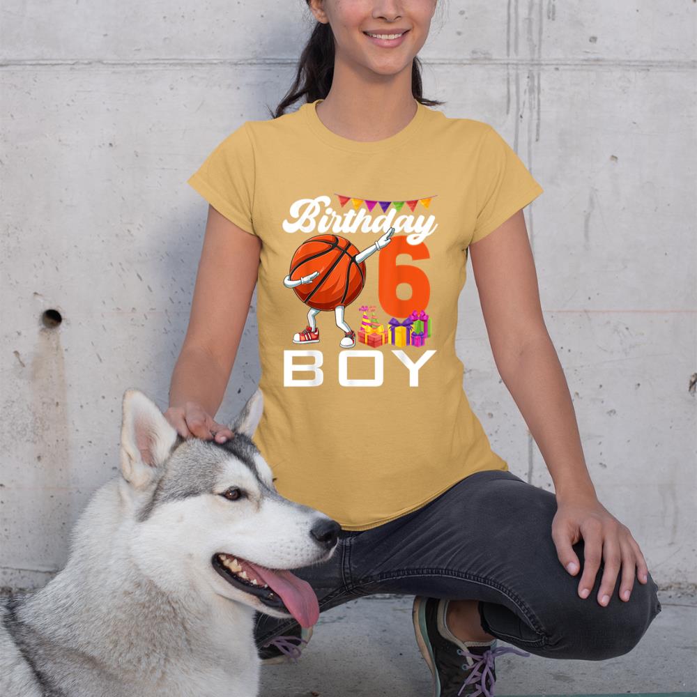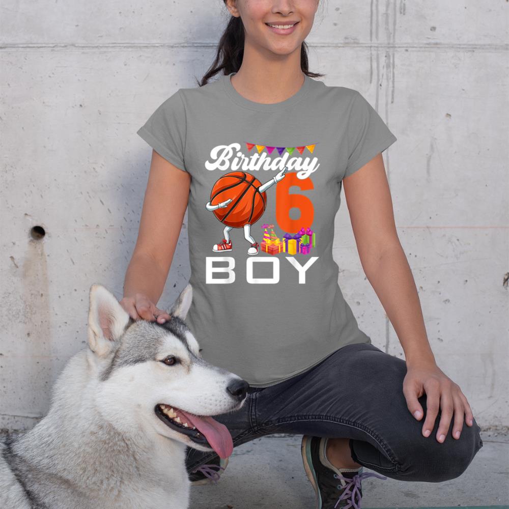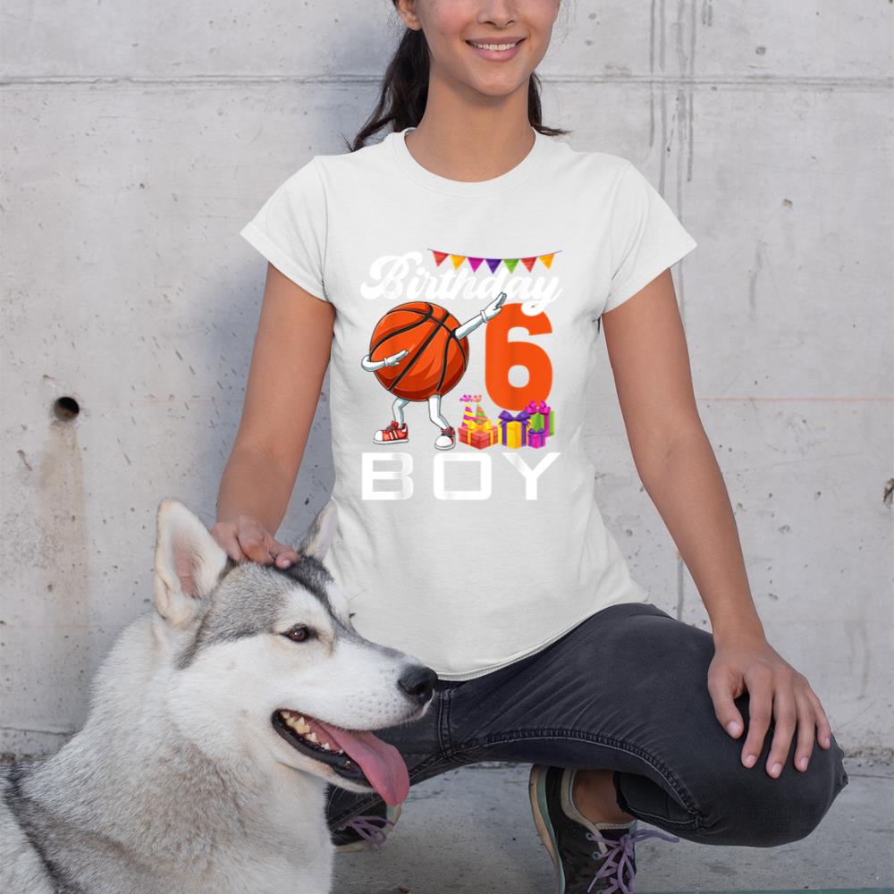 Birthday Boy 6 Years Old Dabbing Basketball Ball 6th Birthda T-Shirt