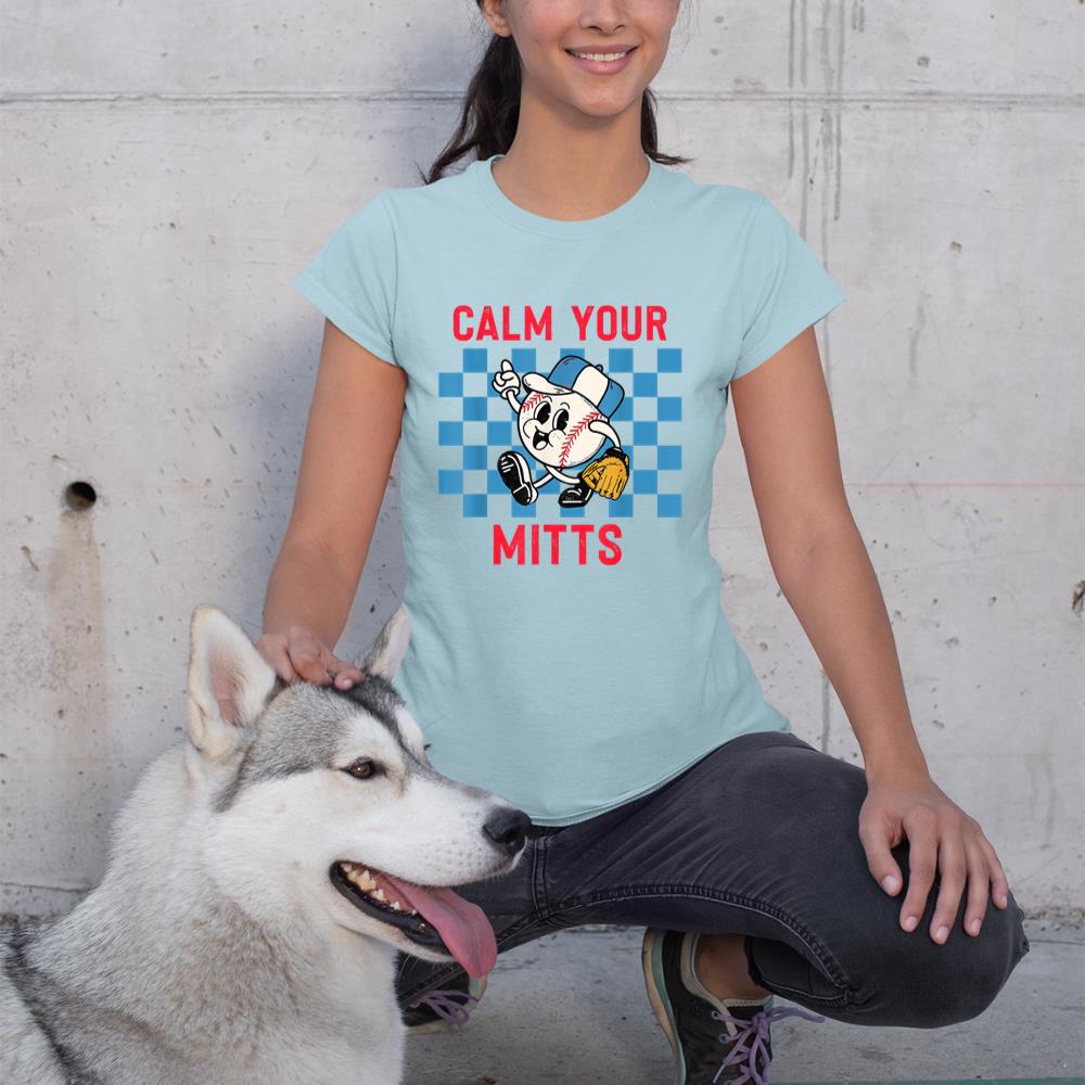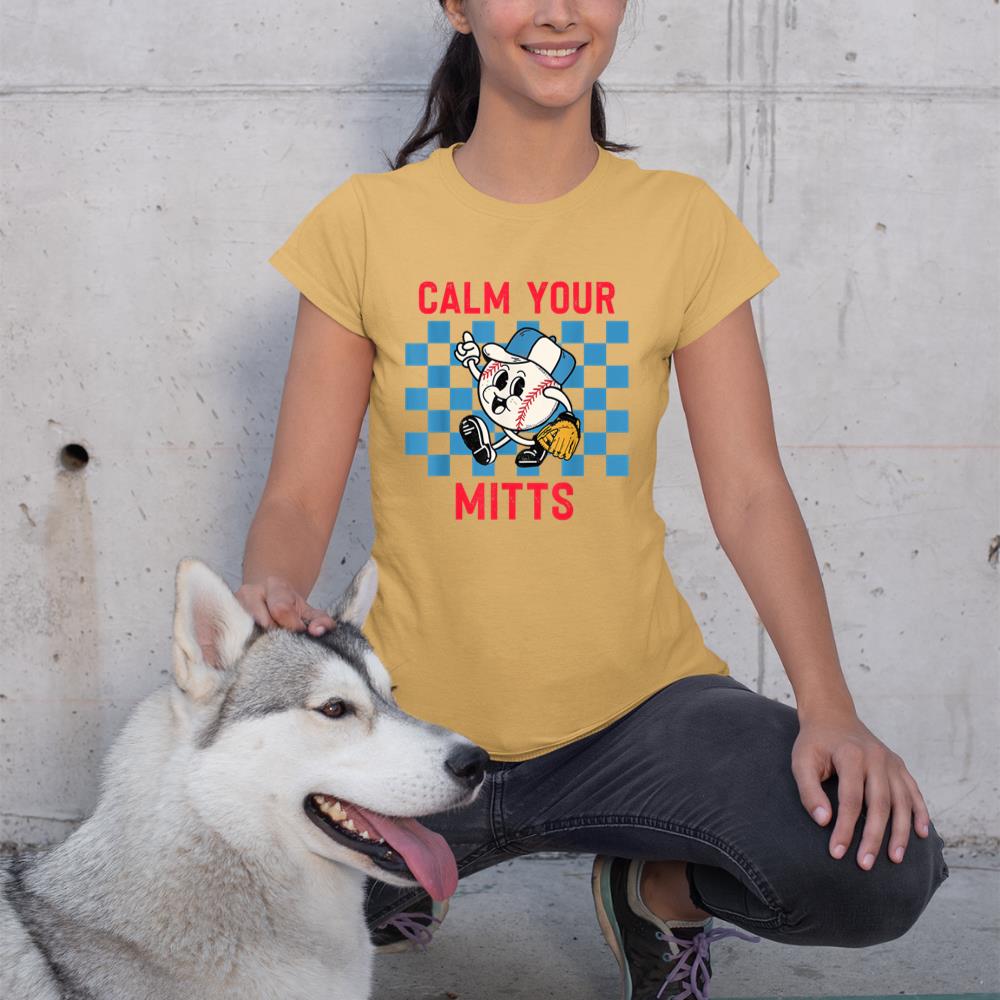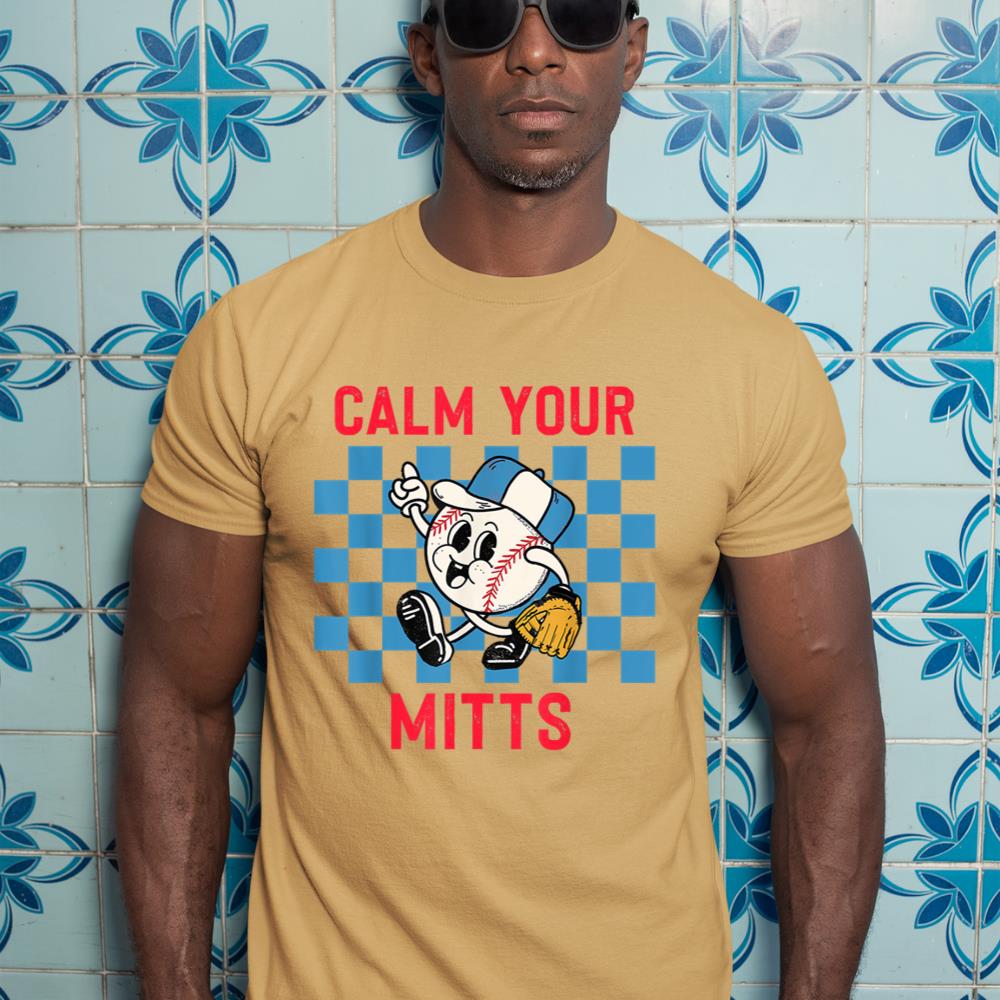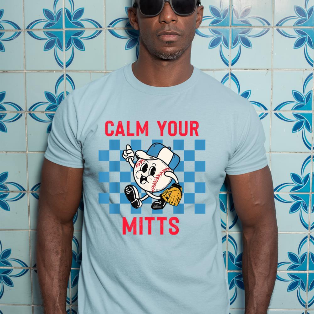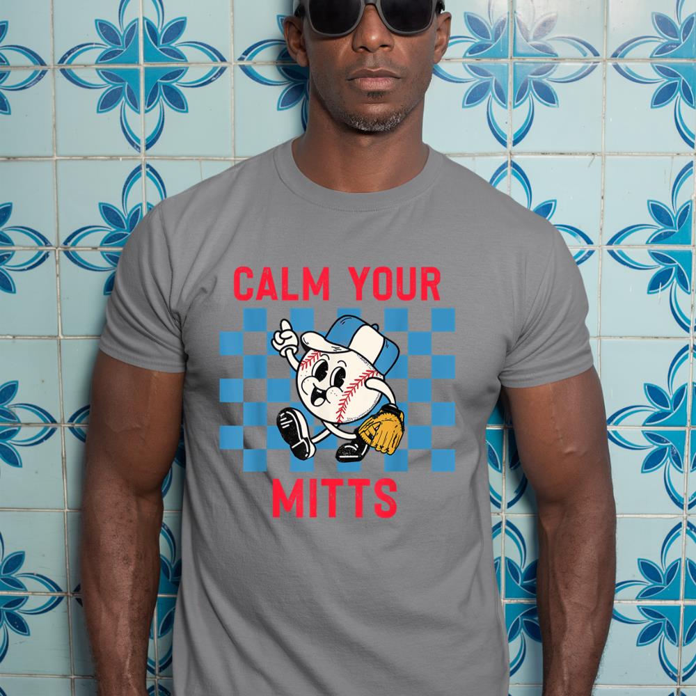 Calm Your Mitts Baseball Player Funny Baseball Game Joke T-Shirt