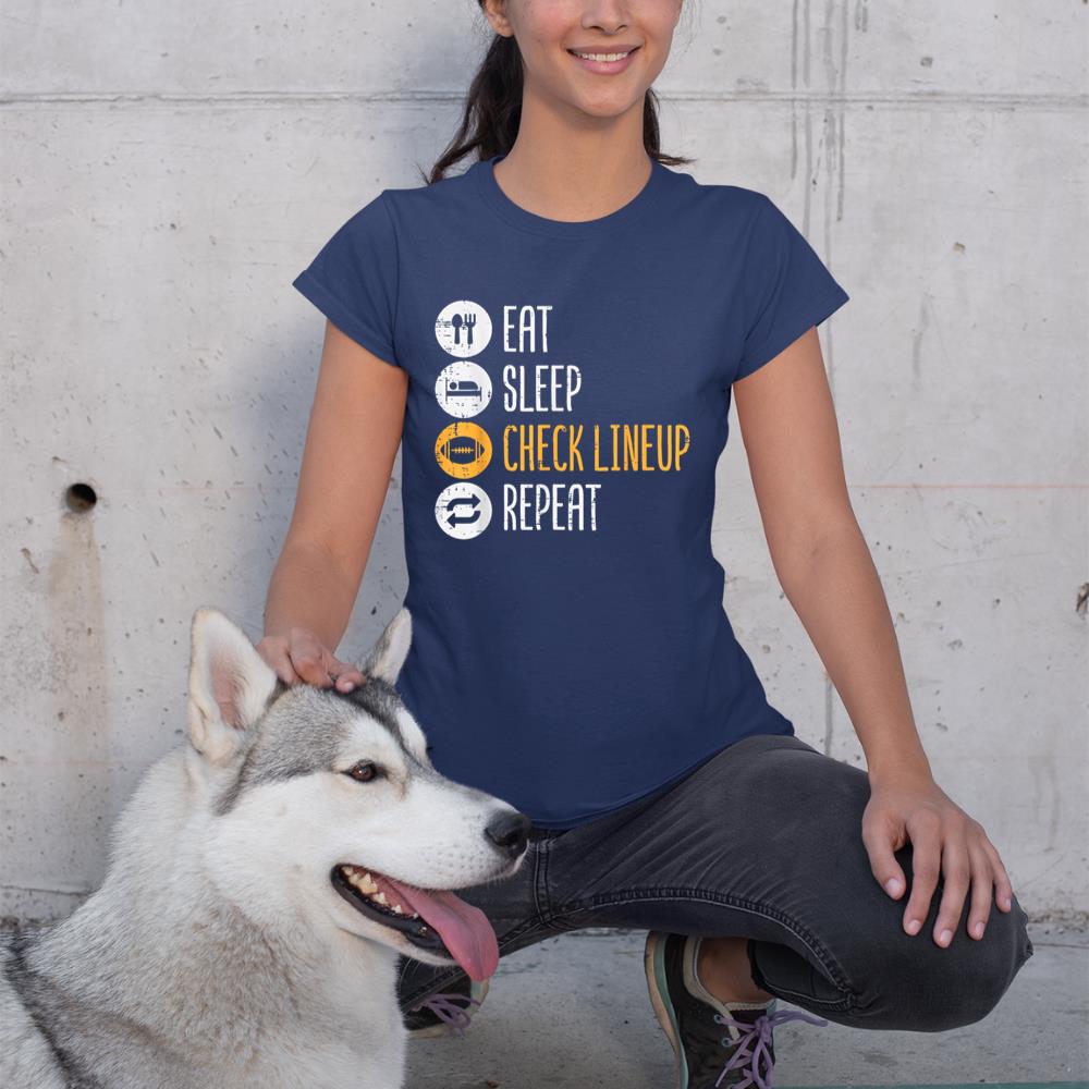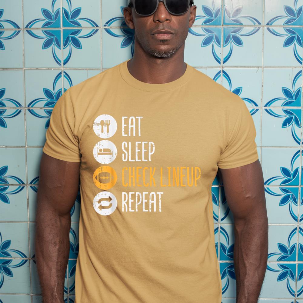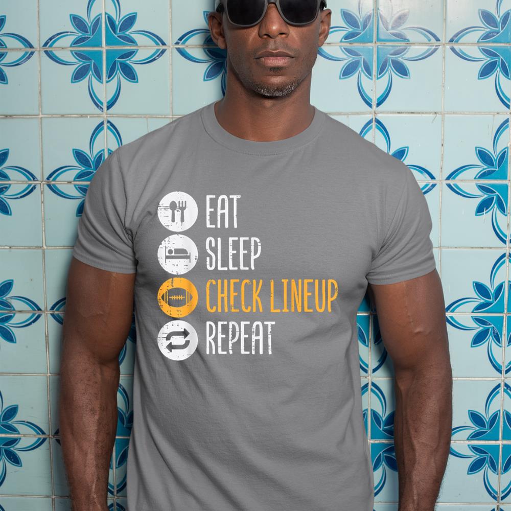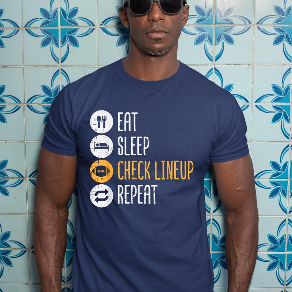 Eat Sleep Check Lineup Repeat Fantasy Football Men Boys Kids T-Shirt