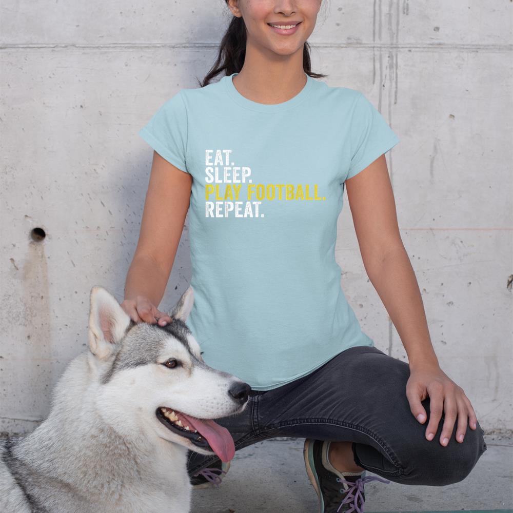 Eat Sleep Play Football Repeat Funny Football Player T-Shirt