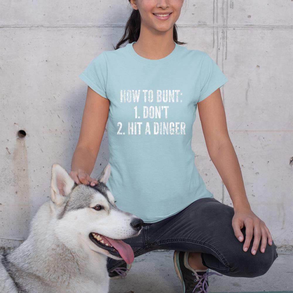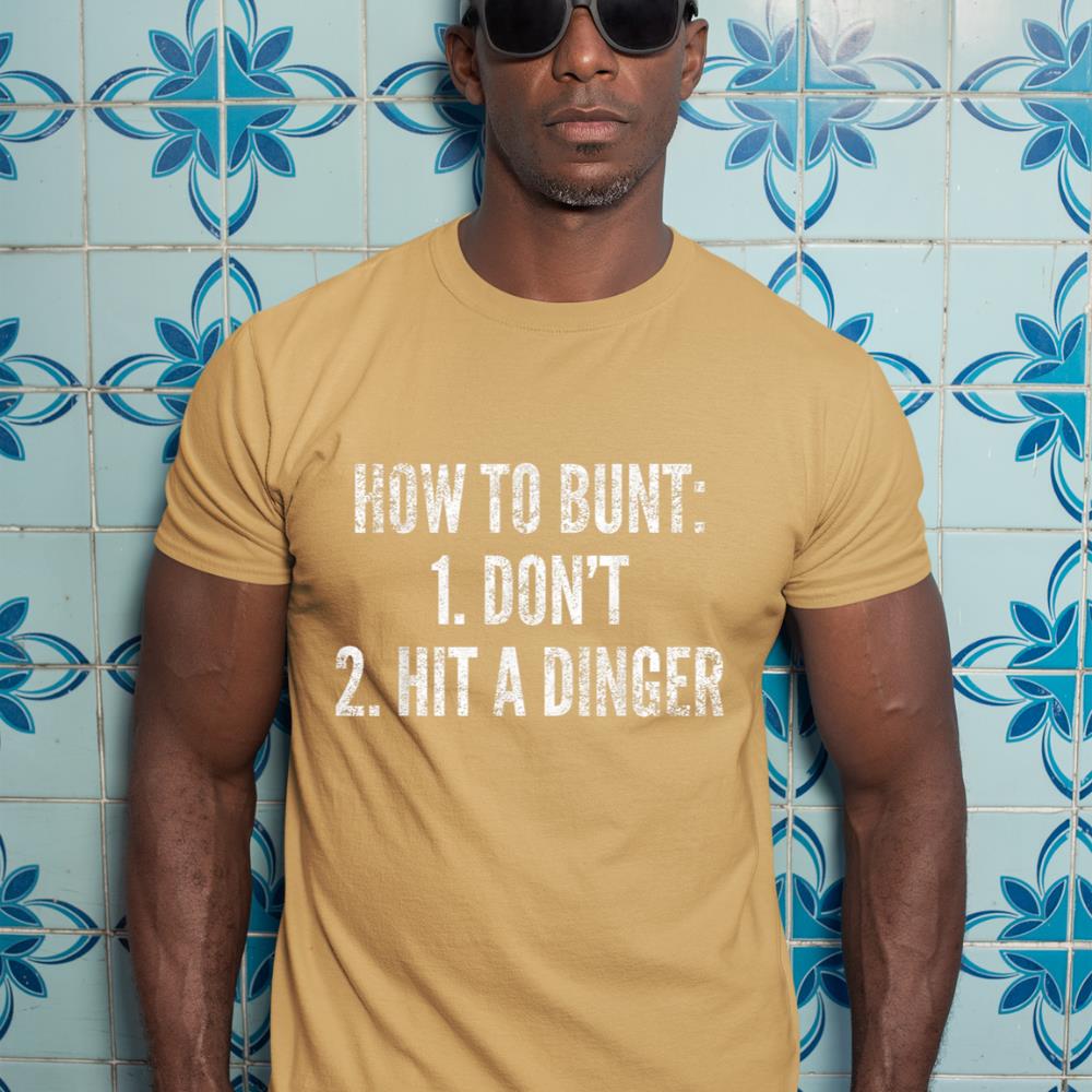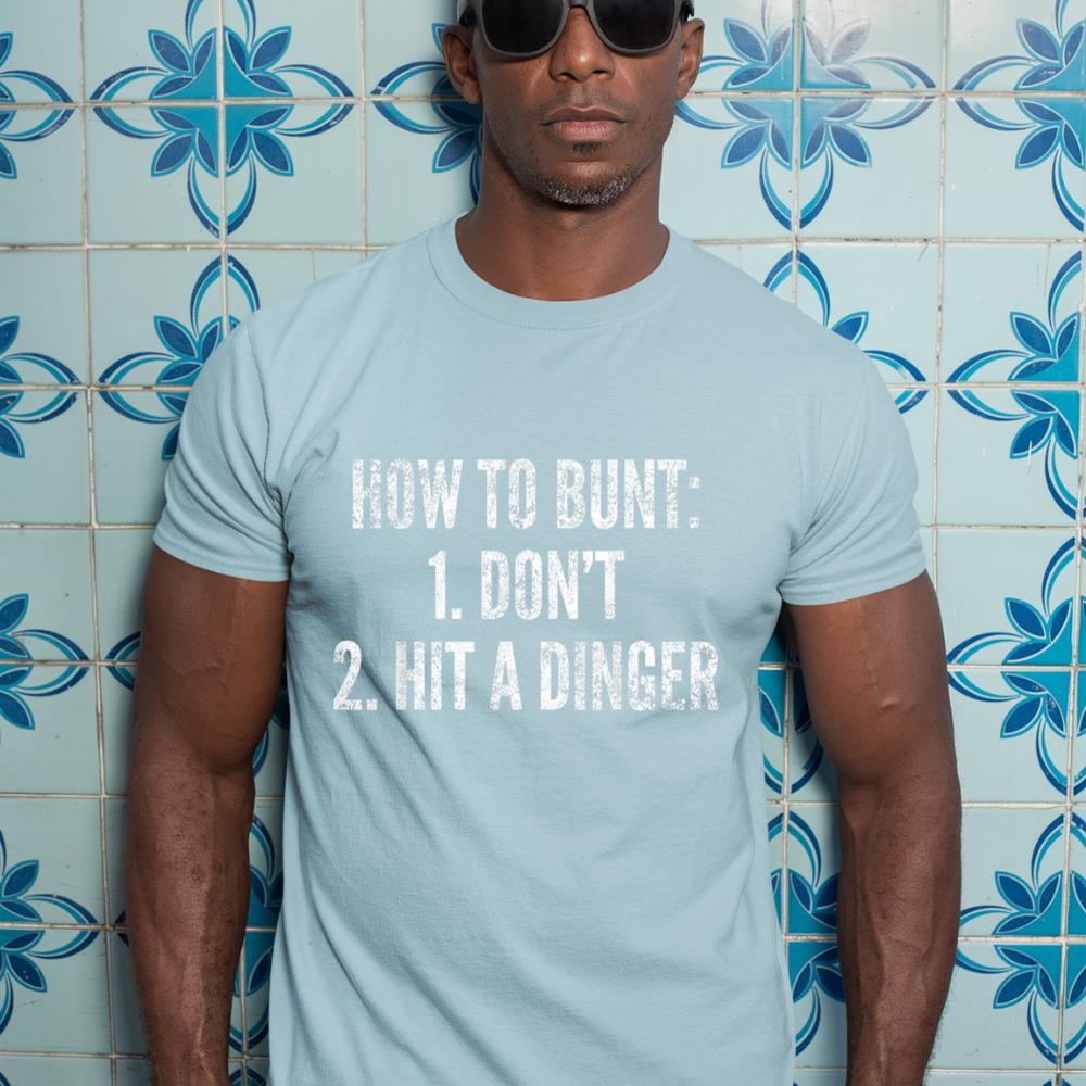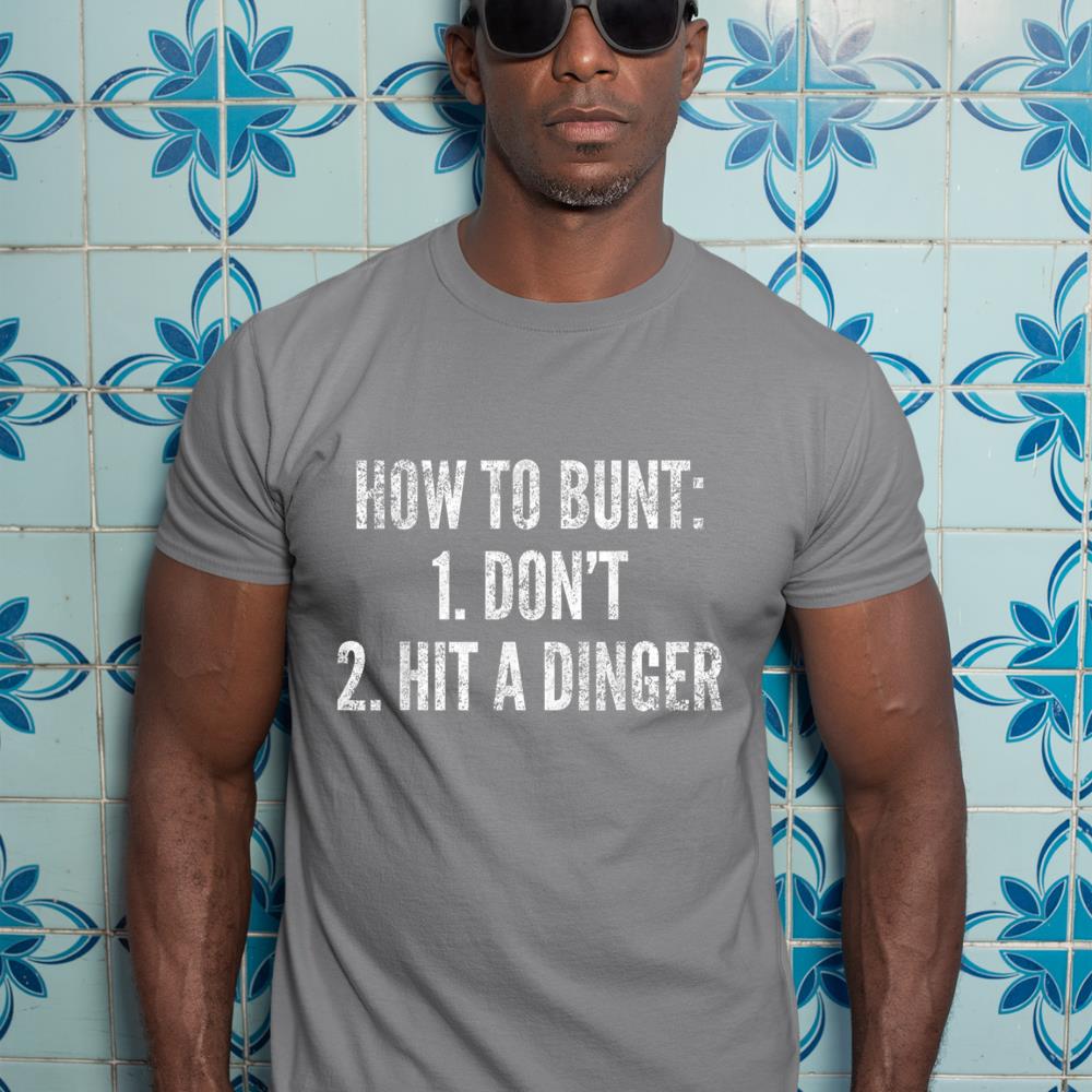 How To Bunt, Hit a Dinger Funny Baseball Player Home Run Fun T-Shirt