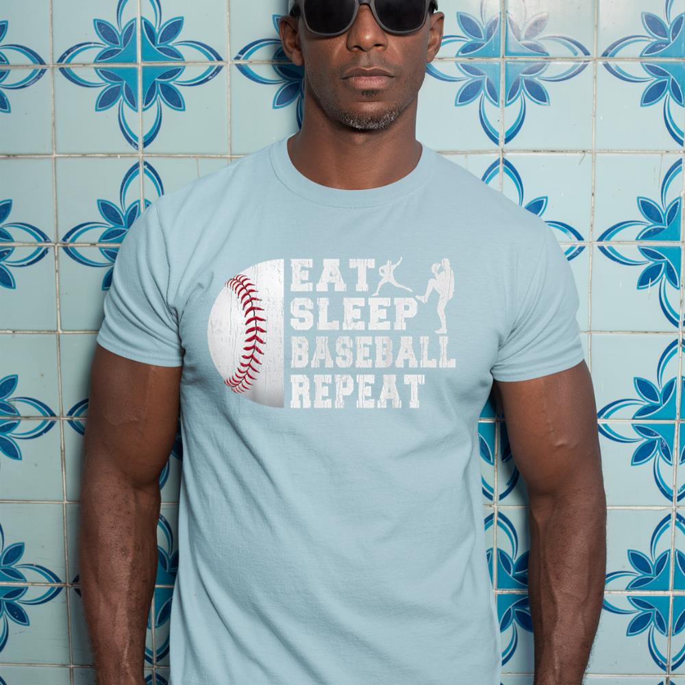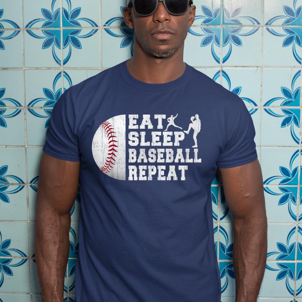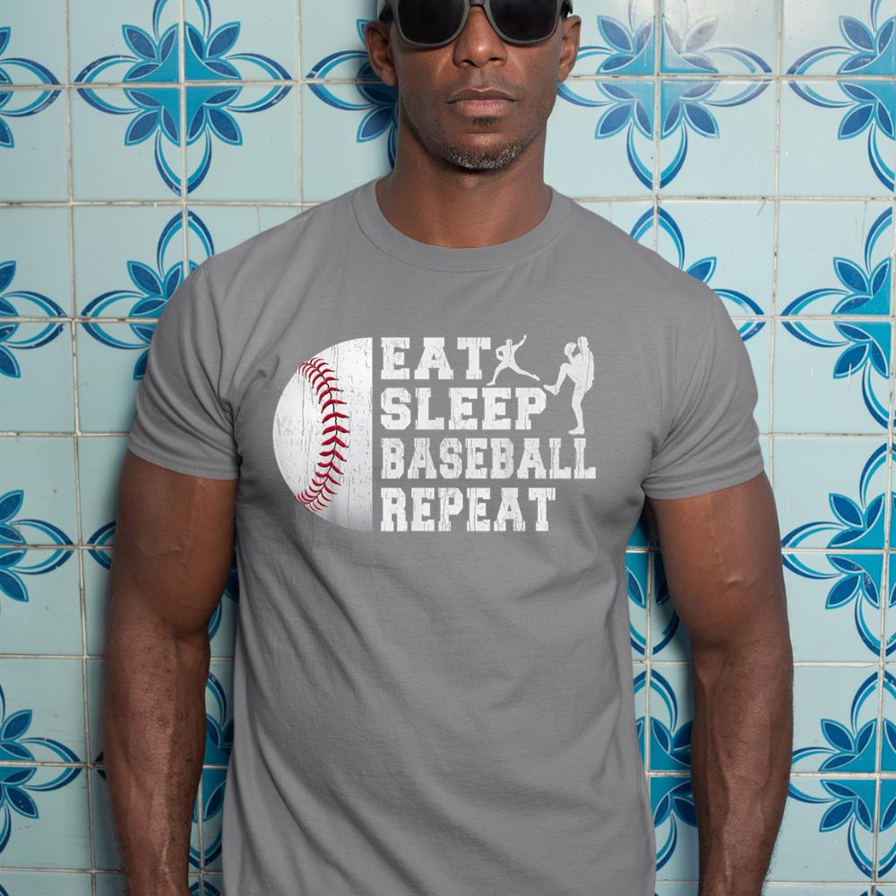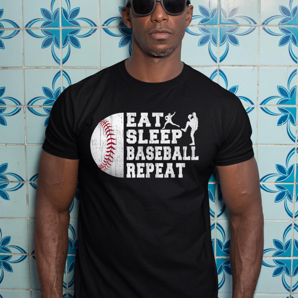 Men Funny Baseball Boys Player Eat Sleep Baseball Repeat T-Shirt
