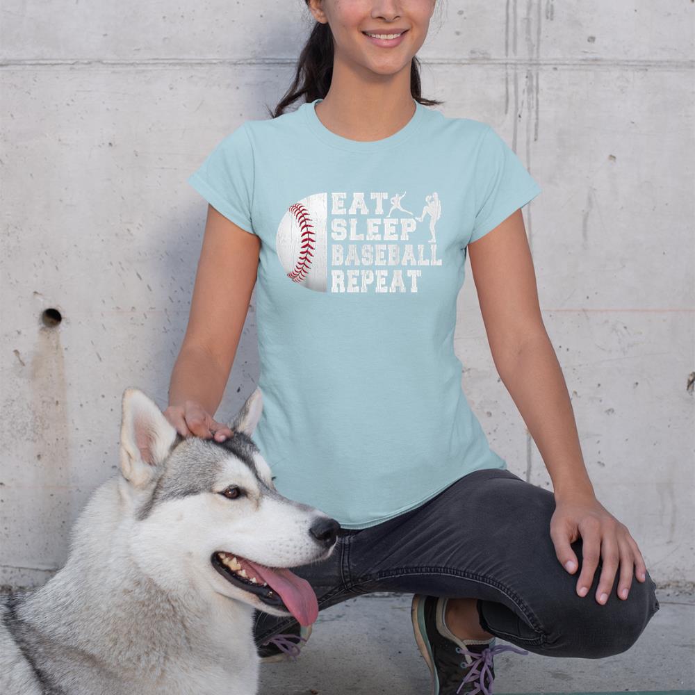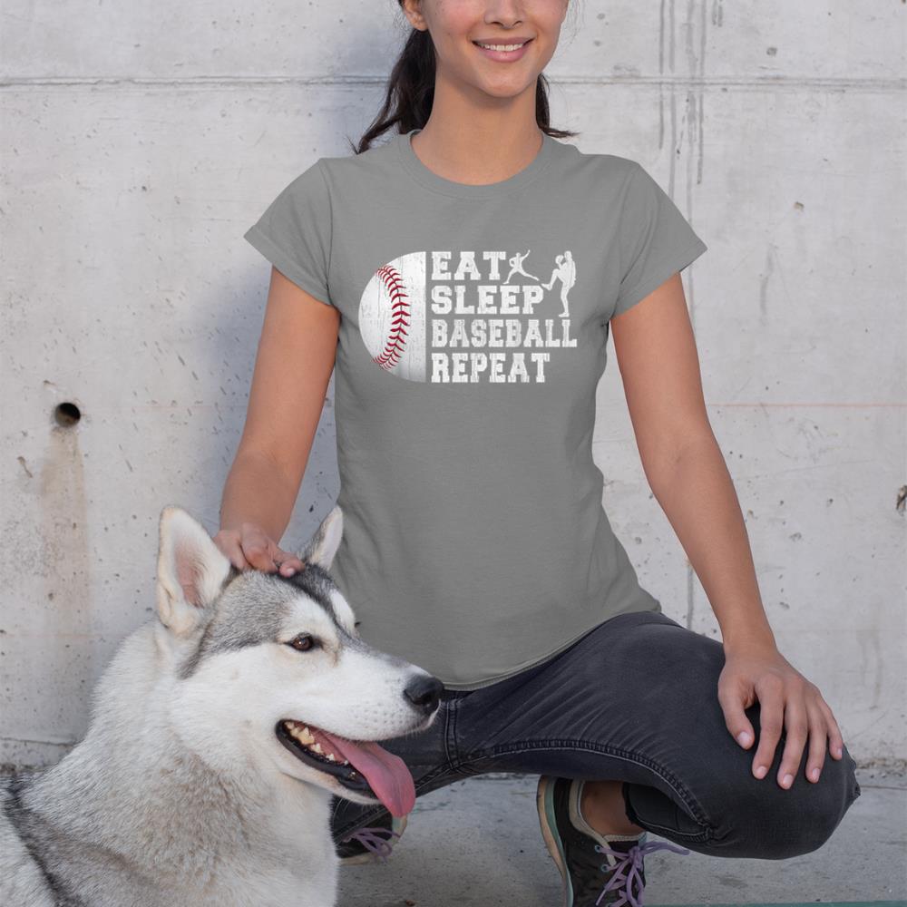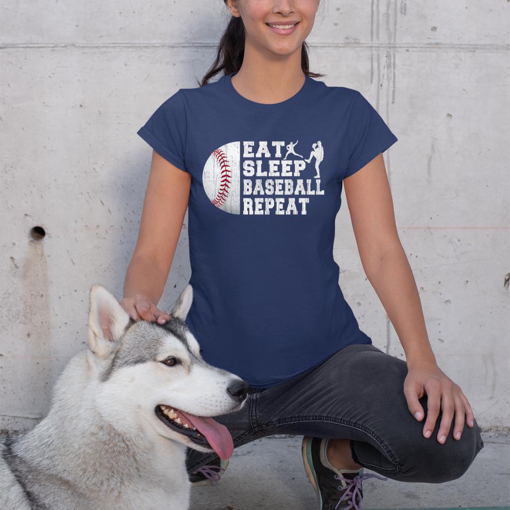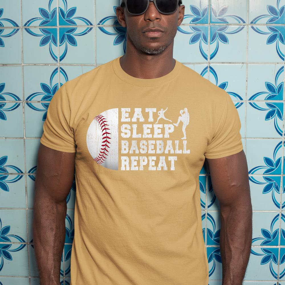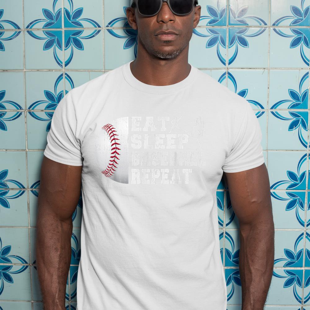 Men Funny Baseball Boys Player Eat Sleep Baseball Repeat T-Shirt
